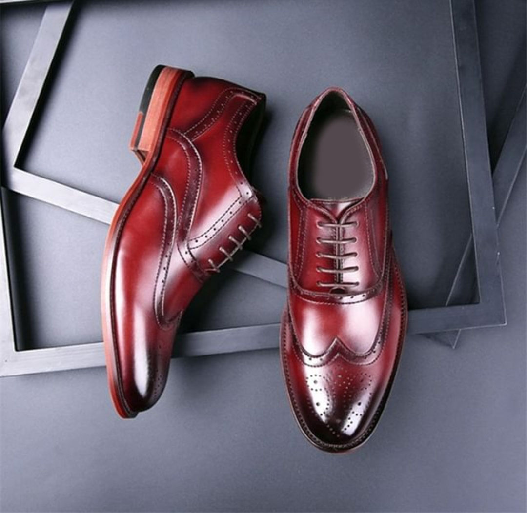 Classy Handmade Wing Tip Brogue Lace Up Leather Shoes