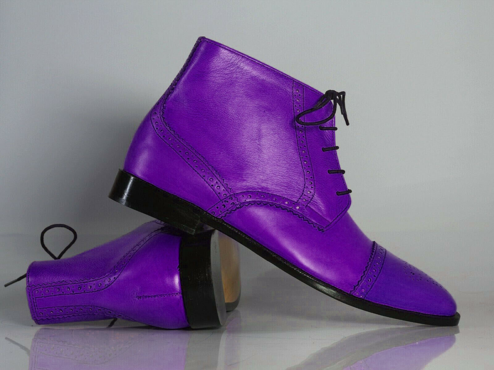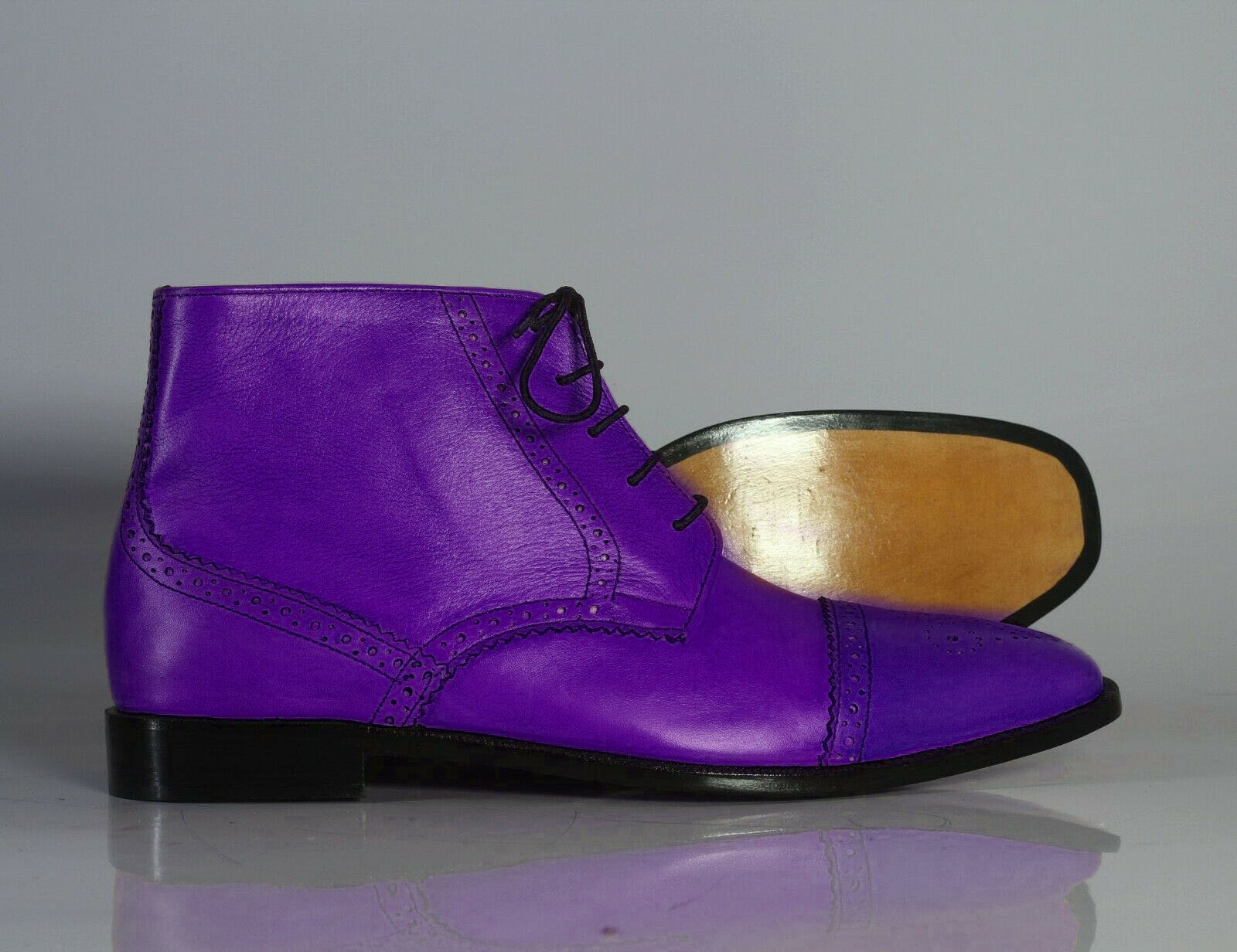 Beautiful Purple Cap Toe Half Ankle Lace Up Chukka Leather Boot