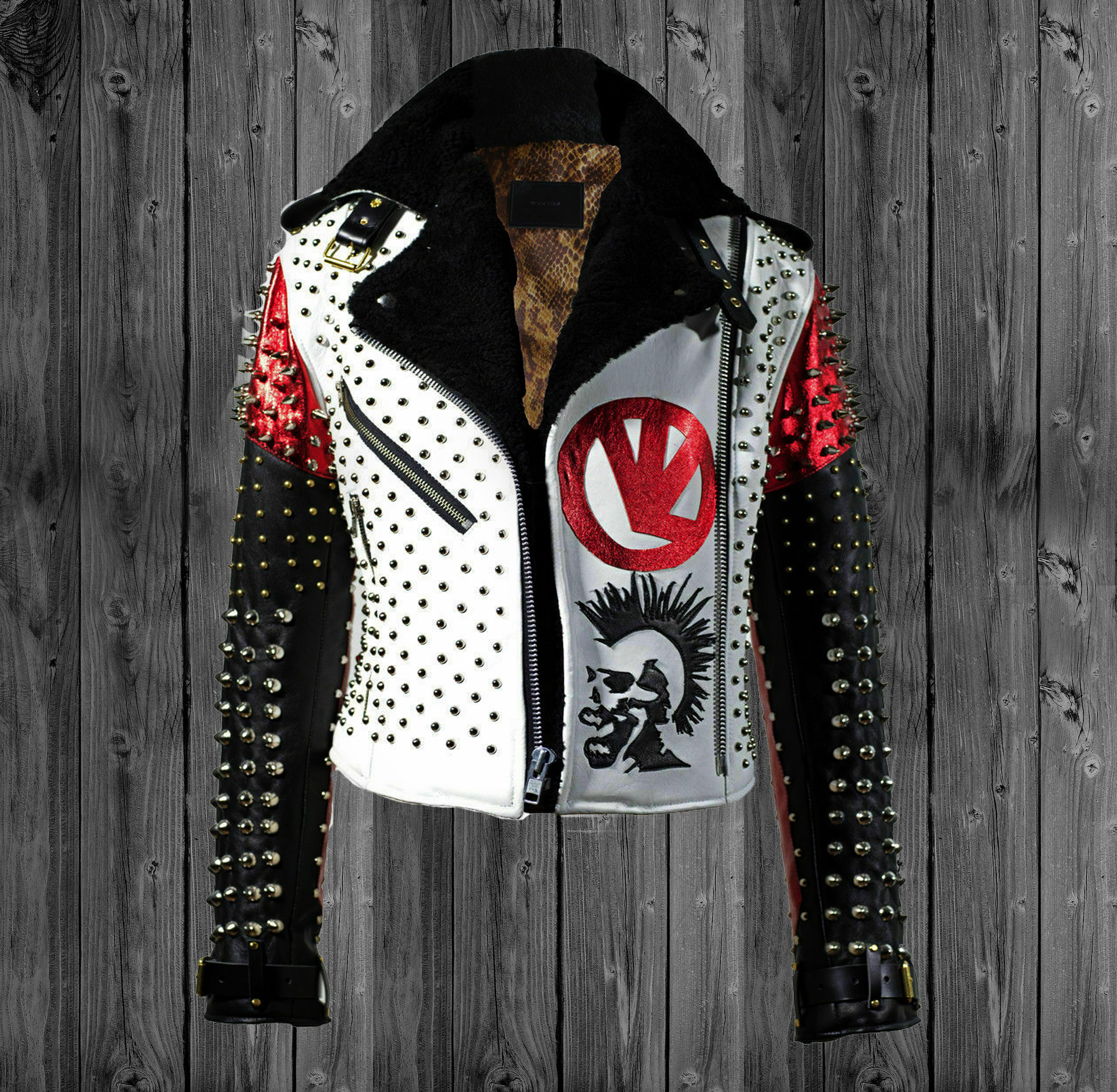 Men's Handmade Victor Luna Studded Rock Punk Genuine Leather Jacket