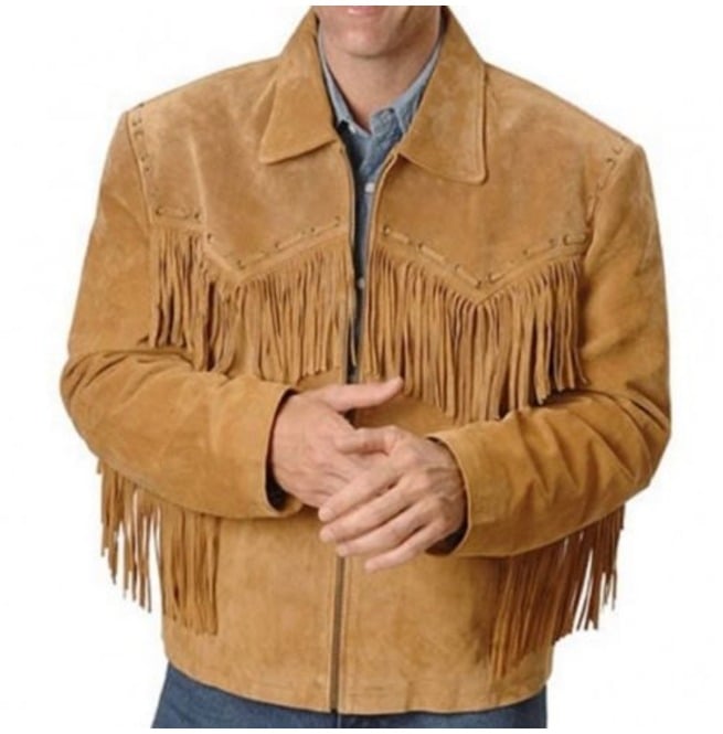 Men's Tan Brown Suede Western Style Cowboy Leather Jacket With Fringes