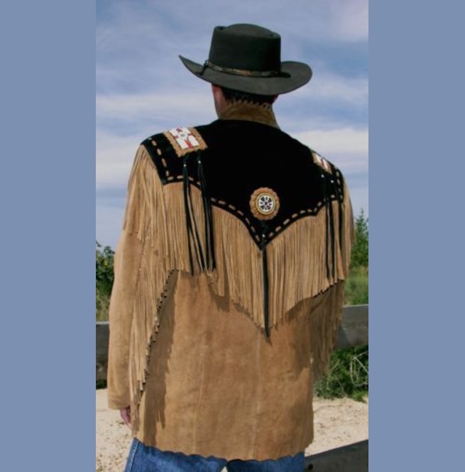 Men's Brown Suede Western Style Cowboy Leather Jacket With Fringe & Beaded