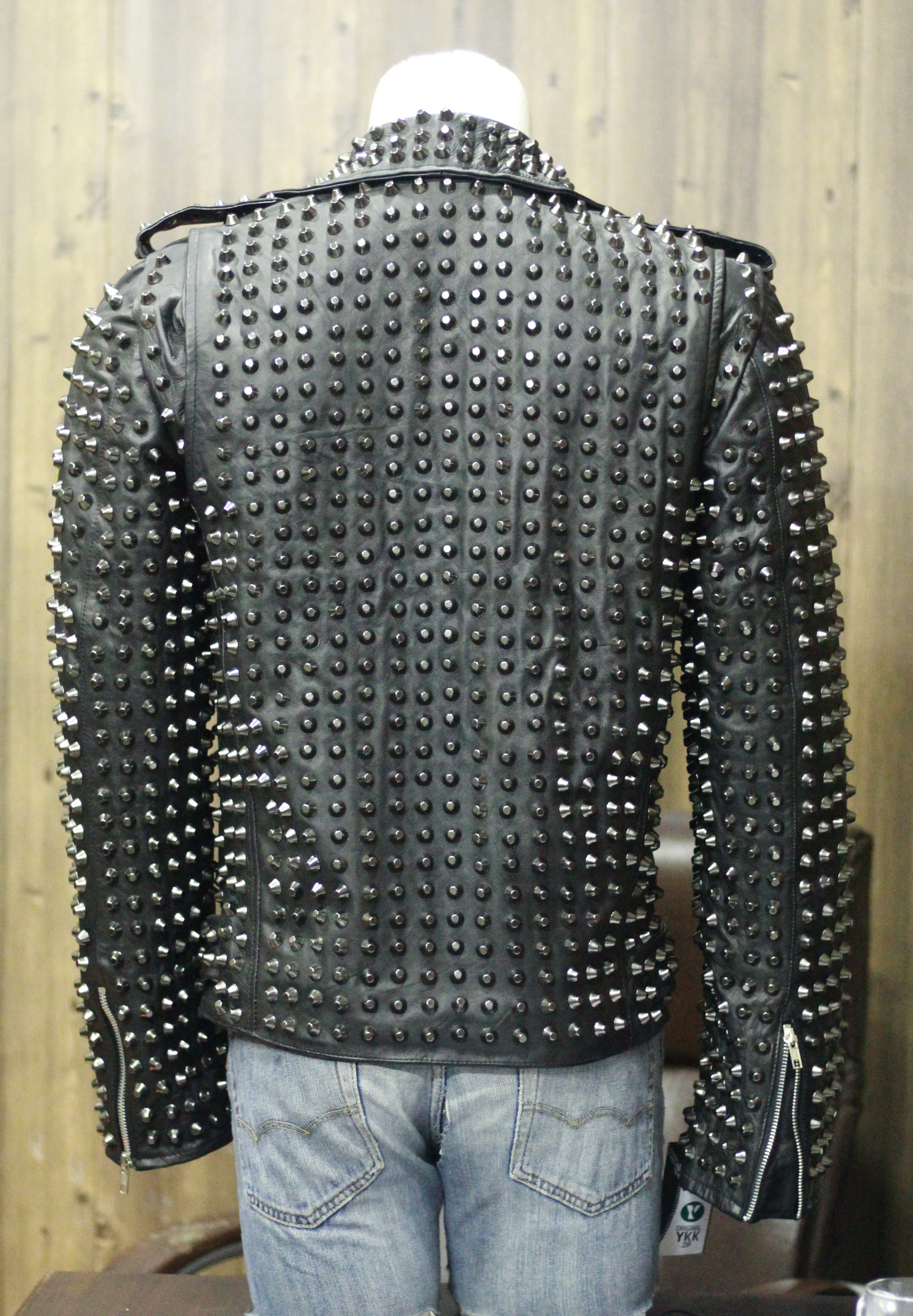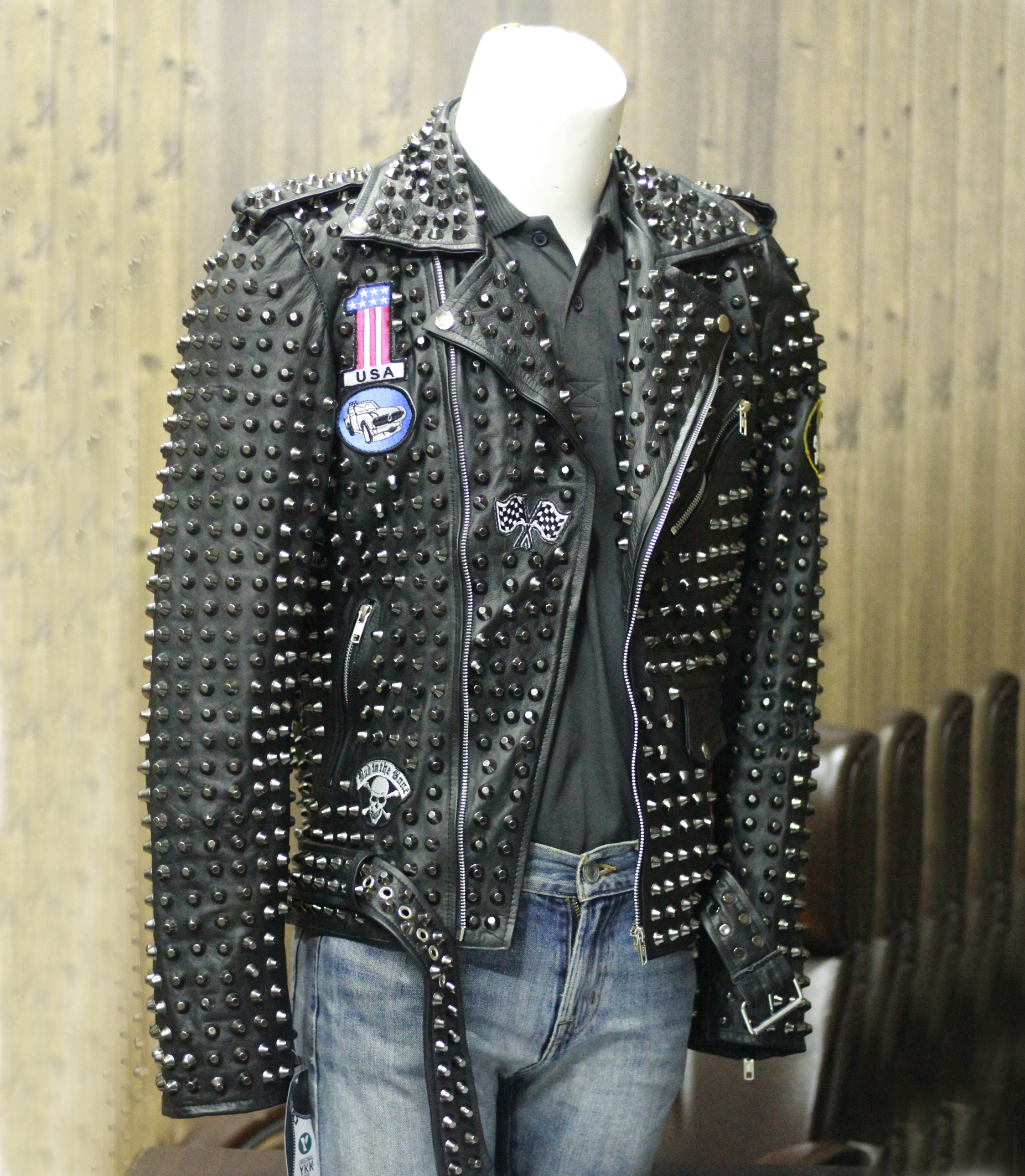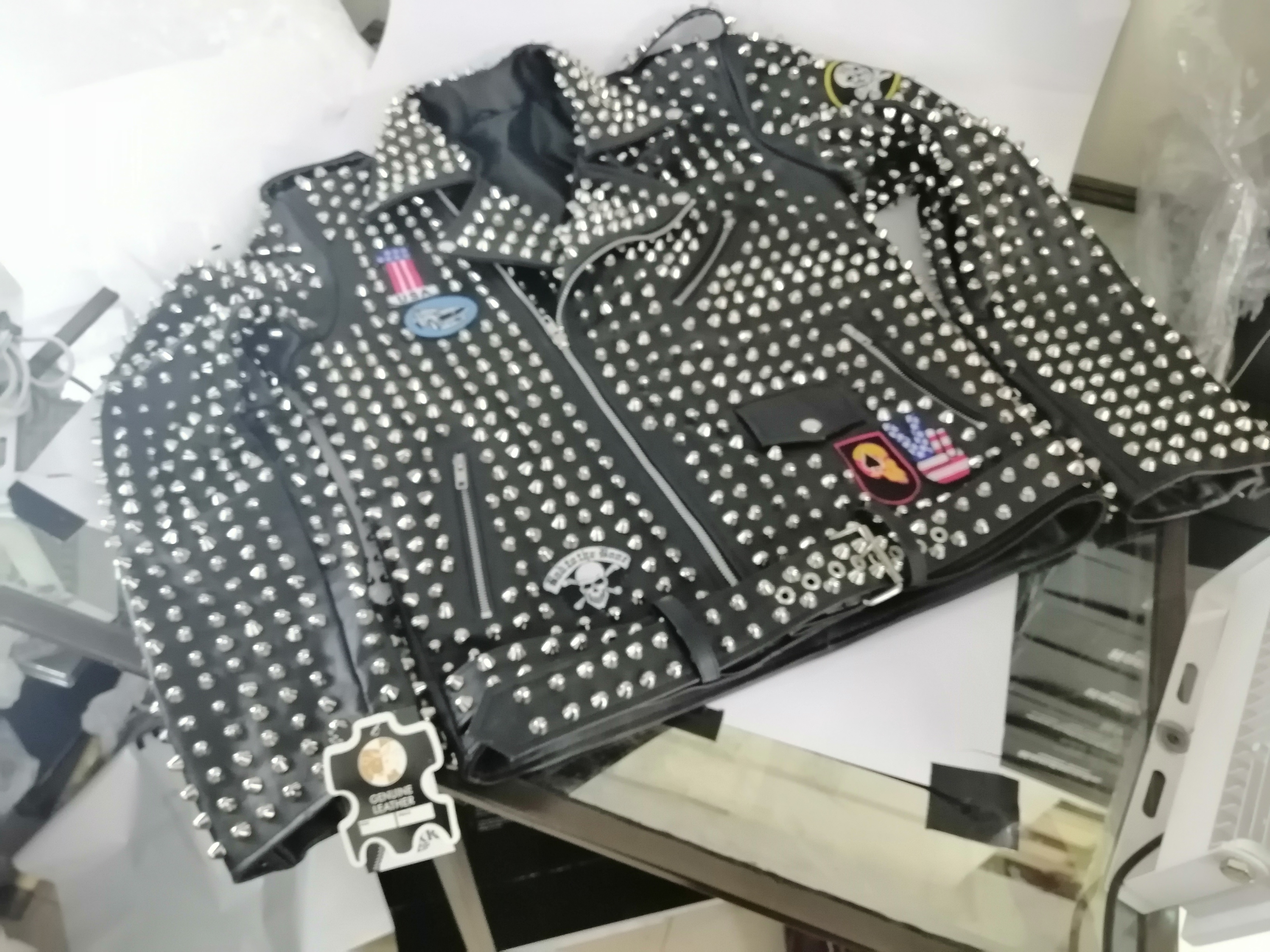 Stylish Men's Fashion Silver Studded Punk Style Leather Jacket