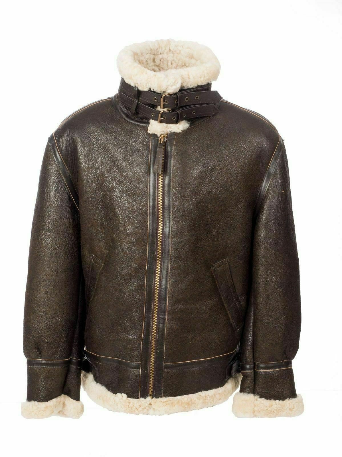 Brown B3 RAF Flight Bomber Aviator Real Sheepskin Leather Shearling Jacket