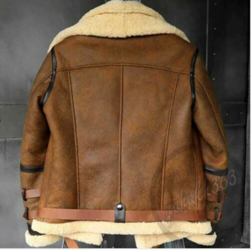 Men’s RAF B3 Bomber Flight Aviator Sheepskin Leather Jacket Denim style with Fur