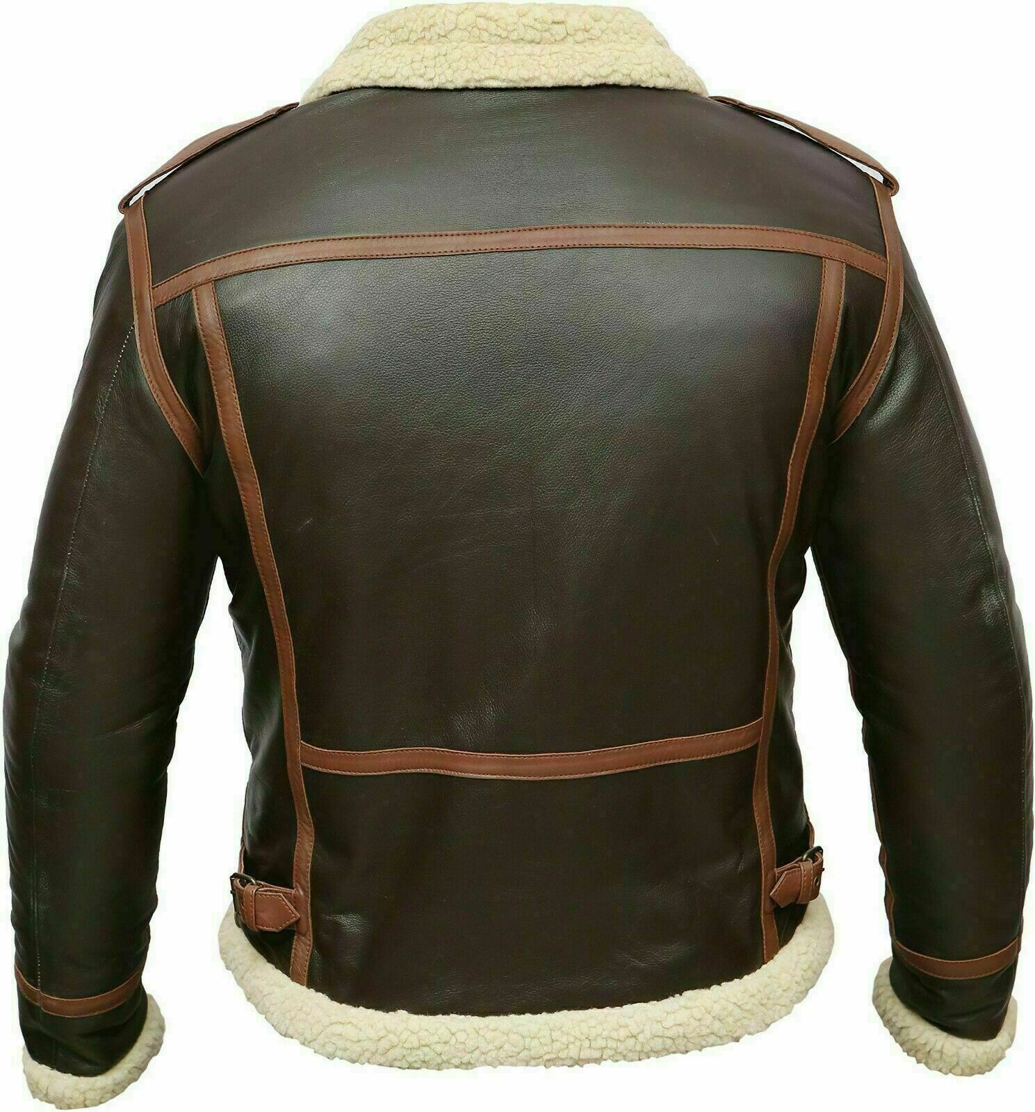 RAF B3 Brown Bomber Distressed Aviator Black Flight Leather Jacket Vest Cockpit