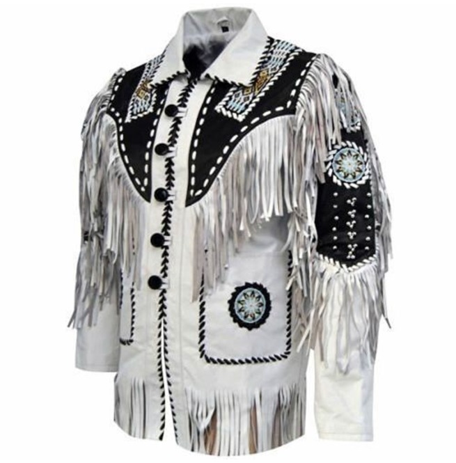 Men's Cowboy Suede Leather Jacket Western Coat Fringes Beads, Cowboy Jacket