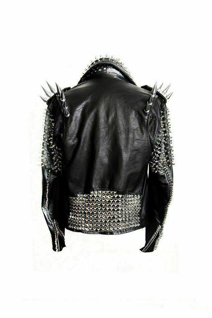 New Handmade Men's Black Fashion Long Studded Punk Style Leather Jacket