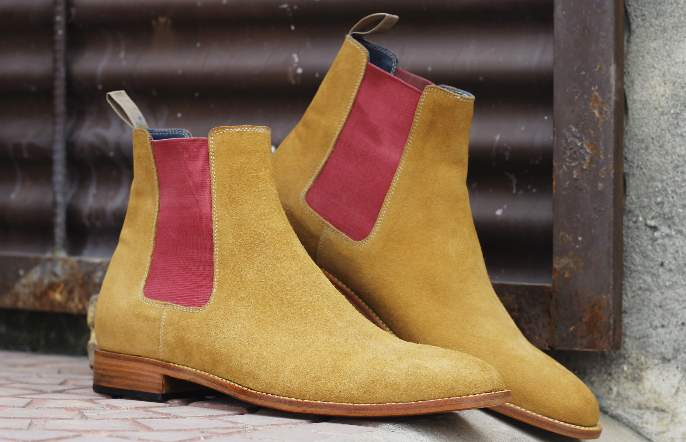 Hand Crafted Beautiful Ankle High Tan Chelsea Leather Suede Boot