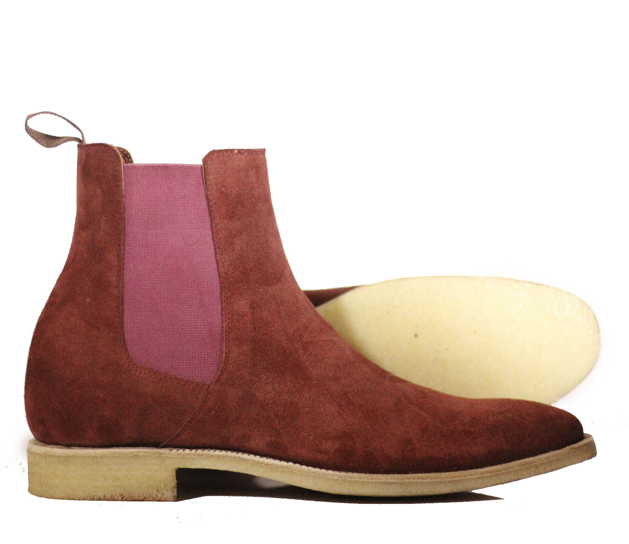 Beautiful Burgundy Ankle High Chelsea Leather Suede Boot