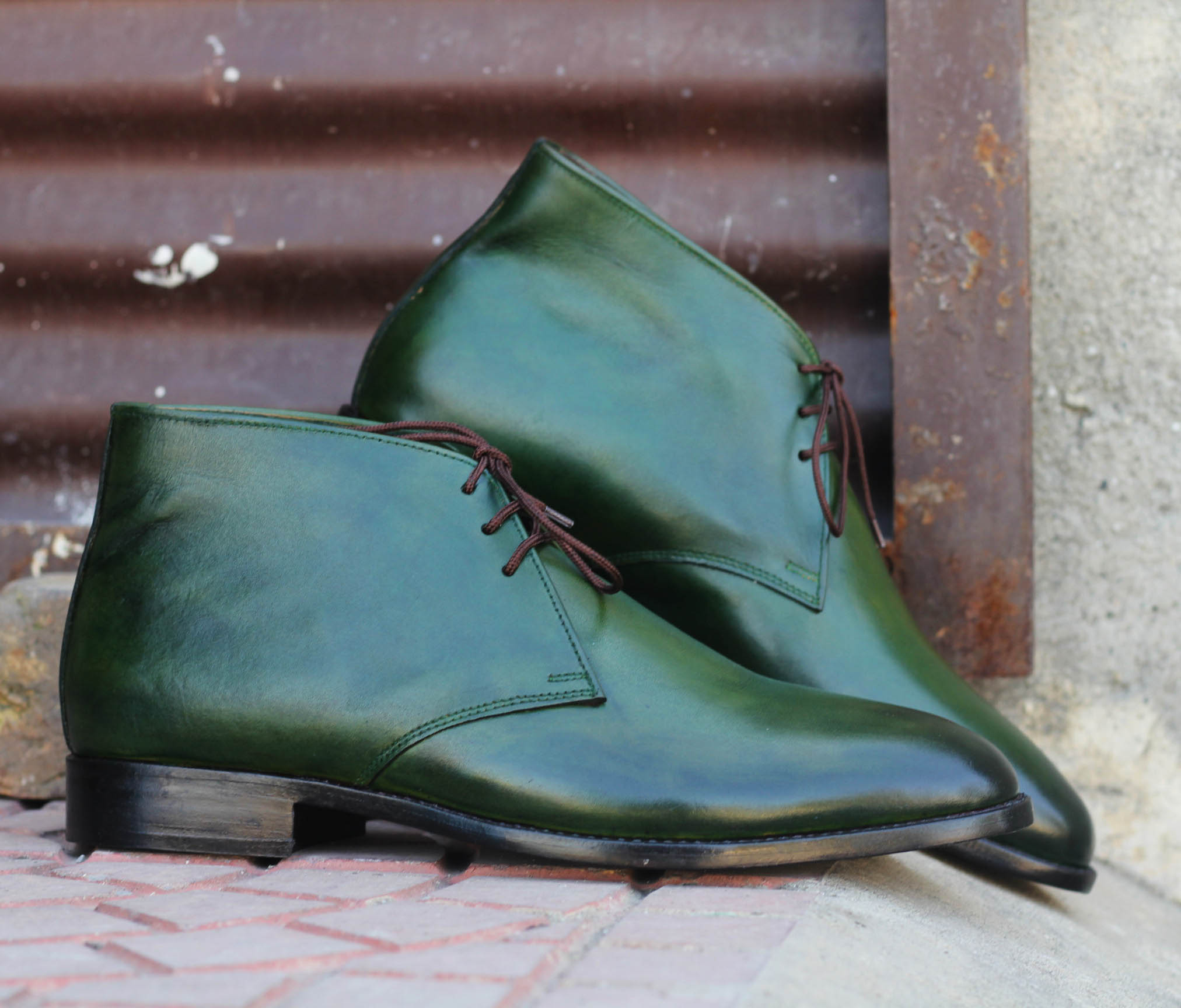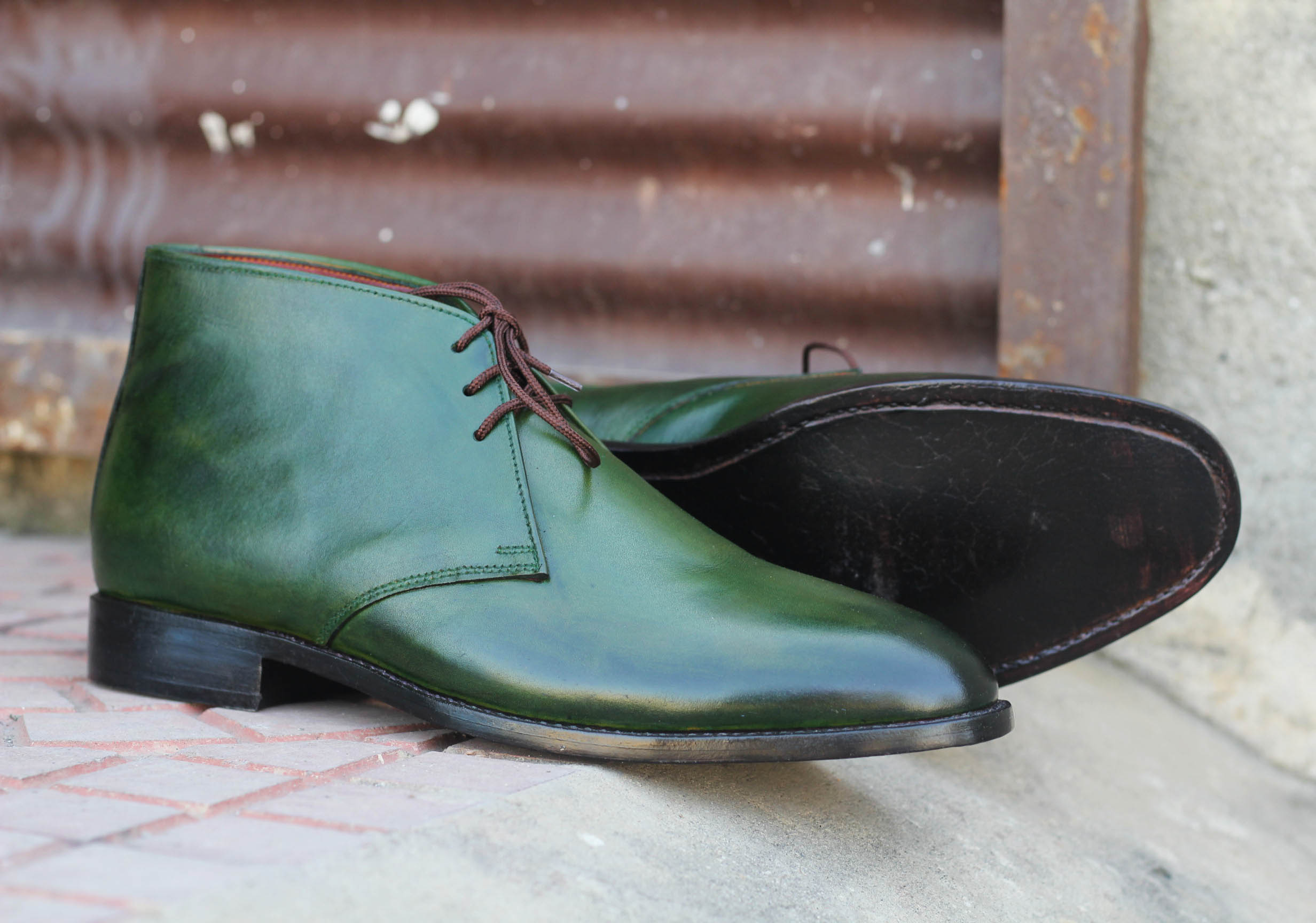 Hand Painted Green Half Ankle Lace Up Leather Chukka Boot