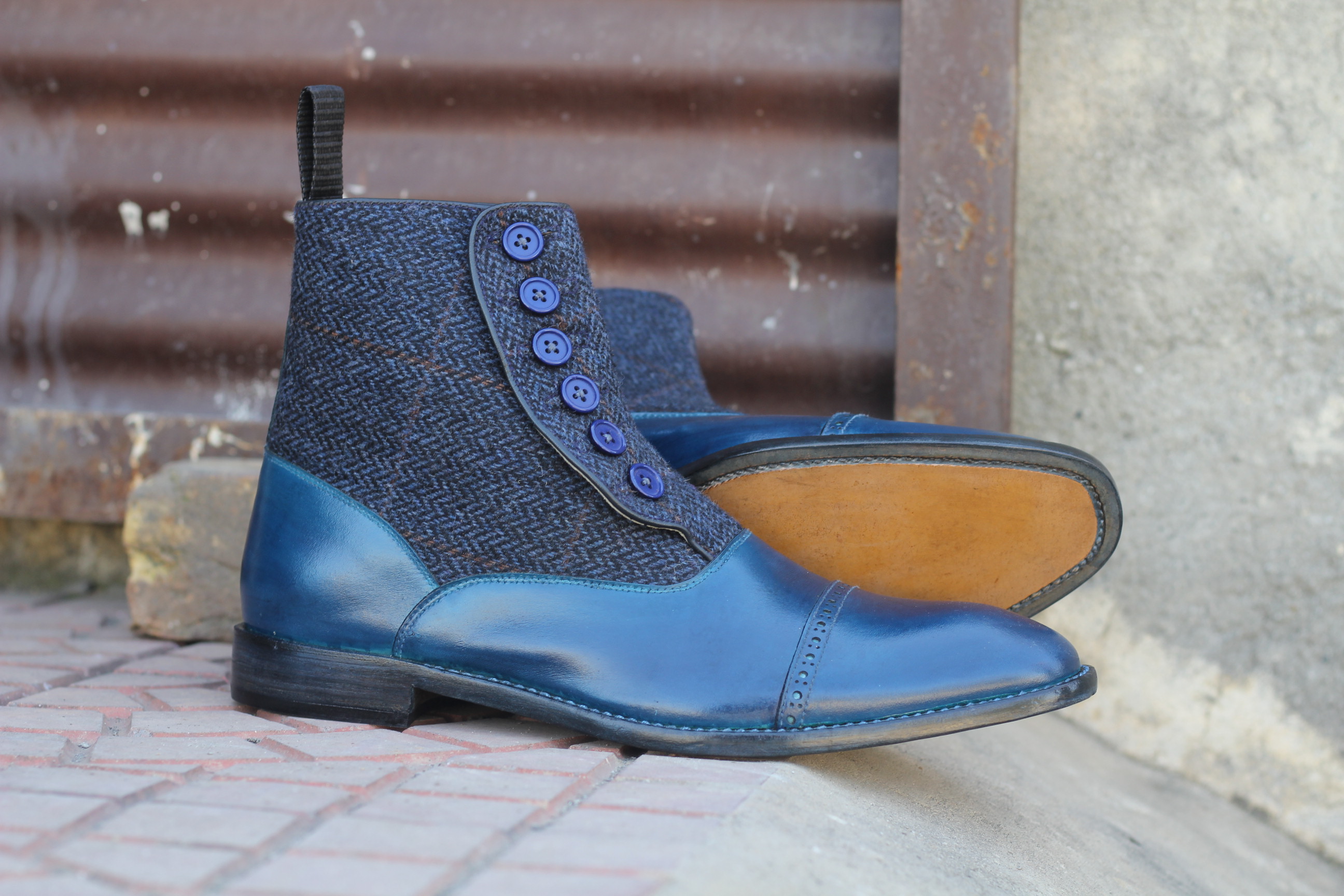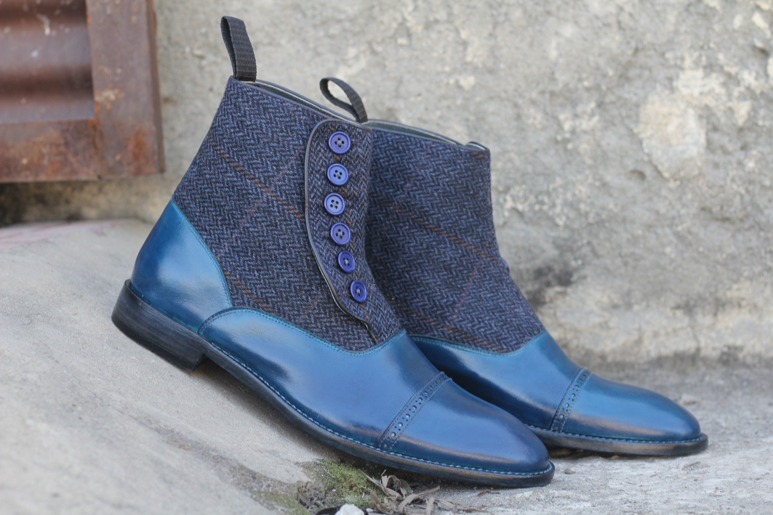 Royal Blue Ankle High Button Top Patent Leather Suede Boot
