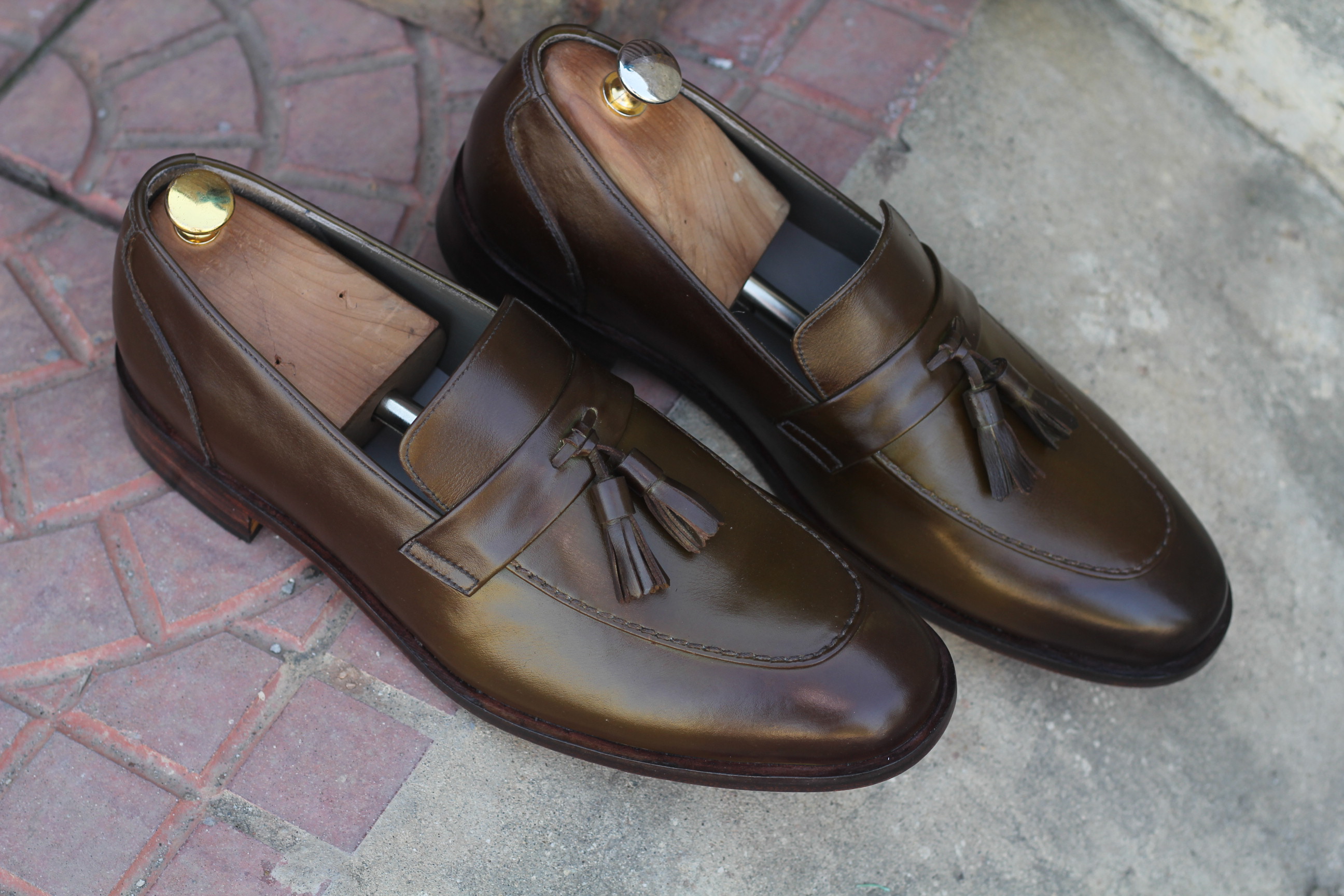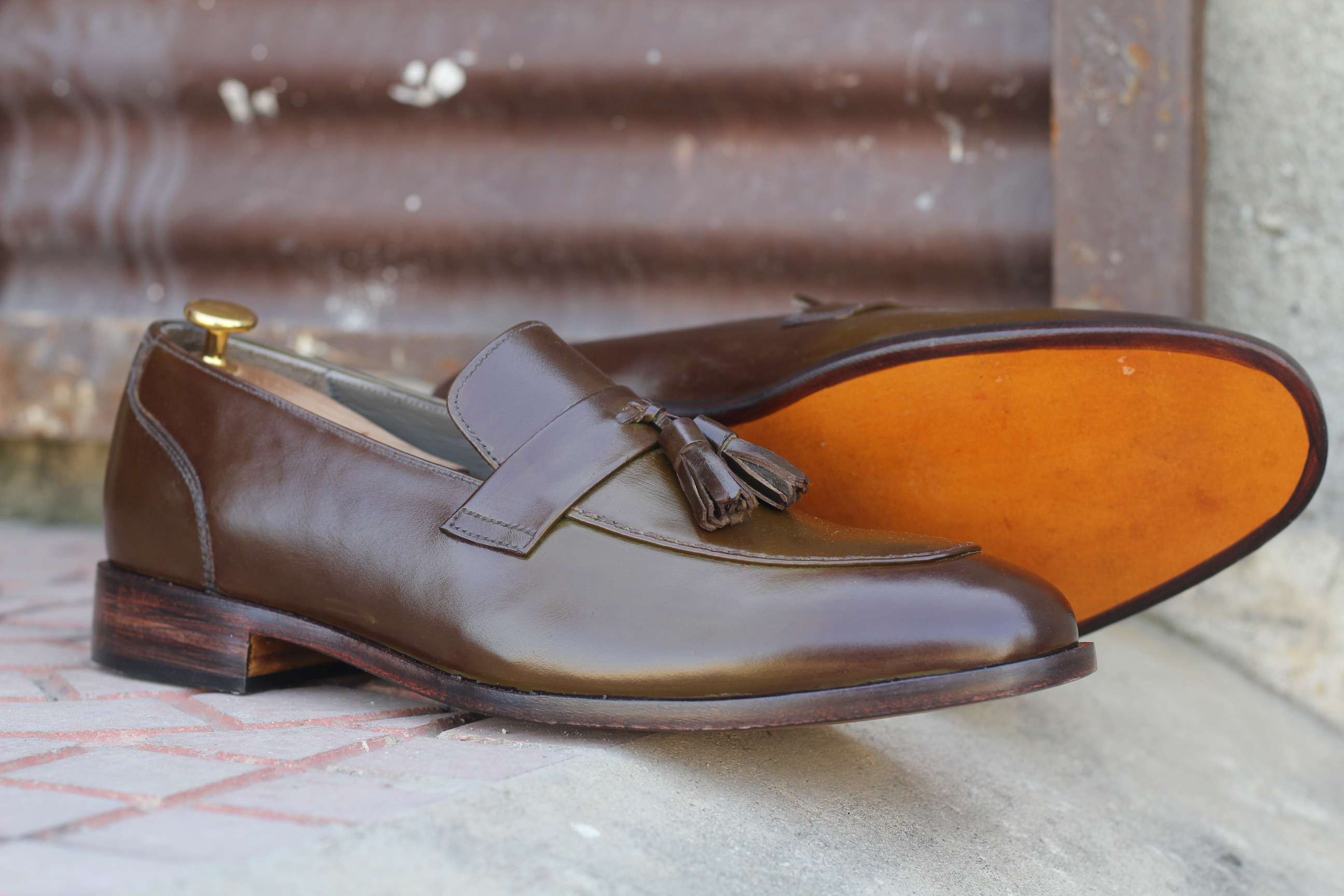 Oxford Round Toe Tasseled Brown Slip On Leather Loafers