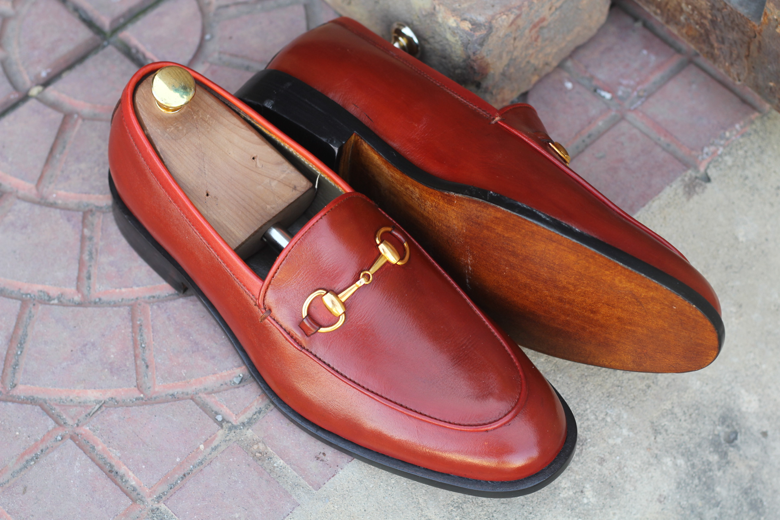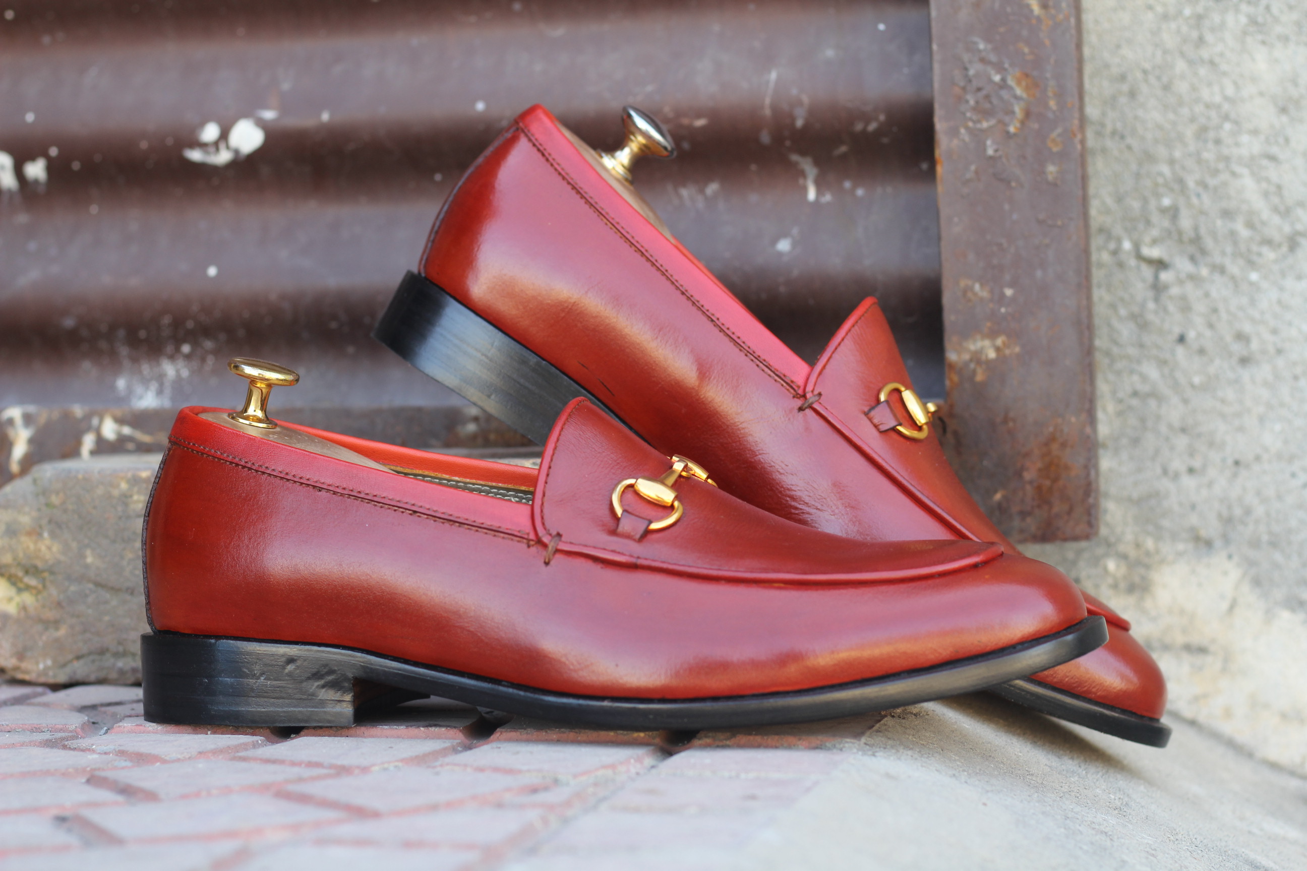 Classy Round Toe Burgundy Slip On Leather Loafers