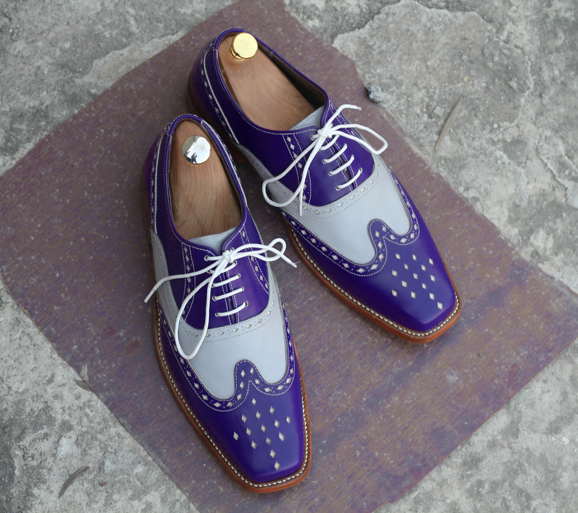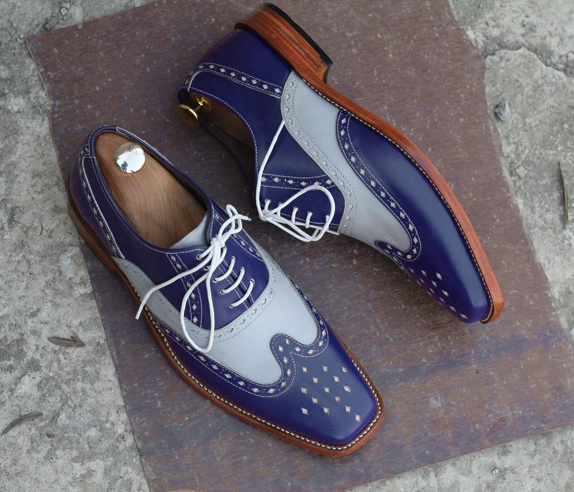 Hand Painted Lace Up Blue & Gray Lace Up Leather Shoes