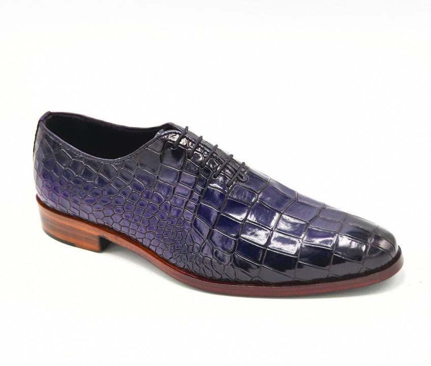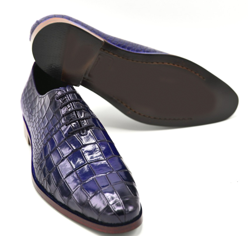 Stylish Alligator Texture Lace Up Blue Slip On Leather Shoes