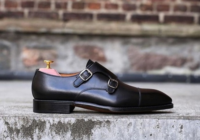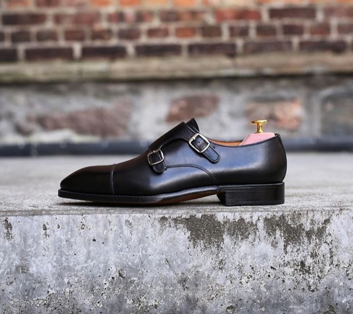 Oxford Cap Toe Black Double Monk Leather Shoes Men's Foot Wear