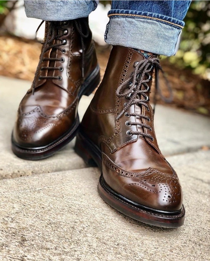 Lace Up Brogue Ankle High Cordovan Wing Tip Brogue Leather Boot