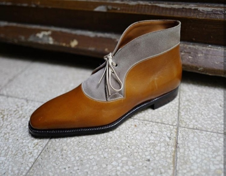 Whole Cut Tan & Gray Leather Suede Lace Up Shoes