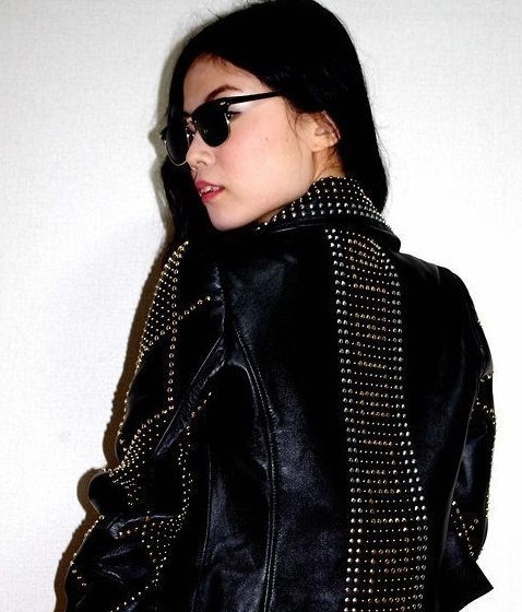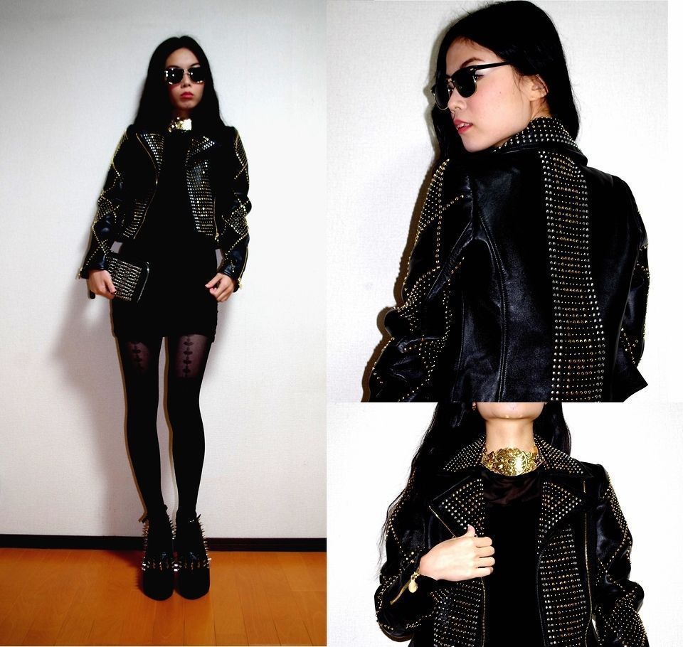 Versace Woman Silver Golden Studded Brando Style Leather Jacket
