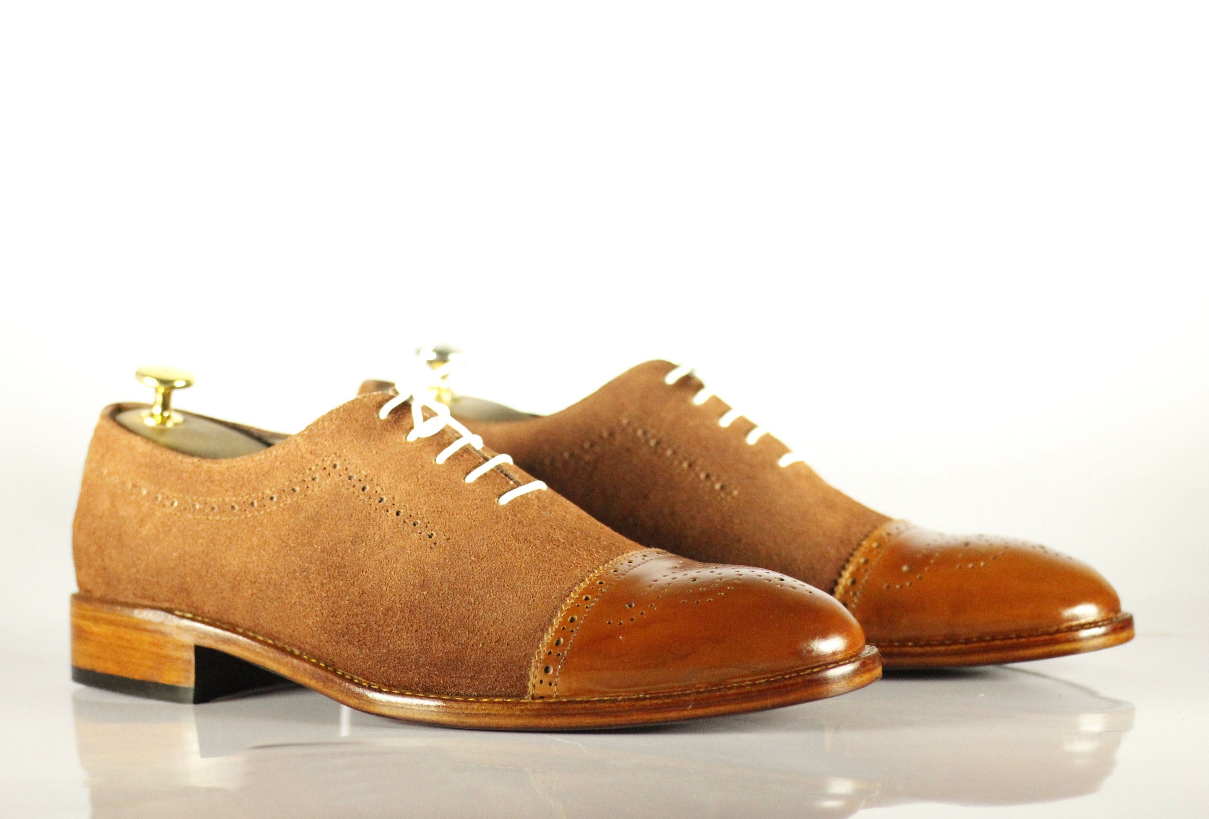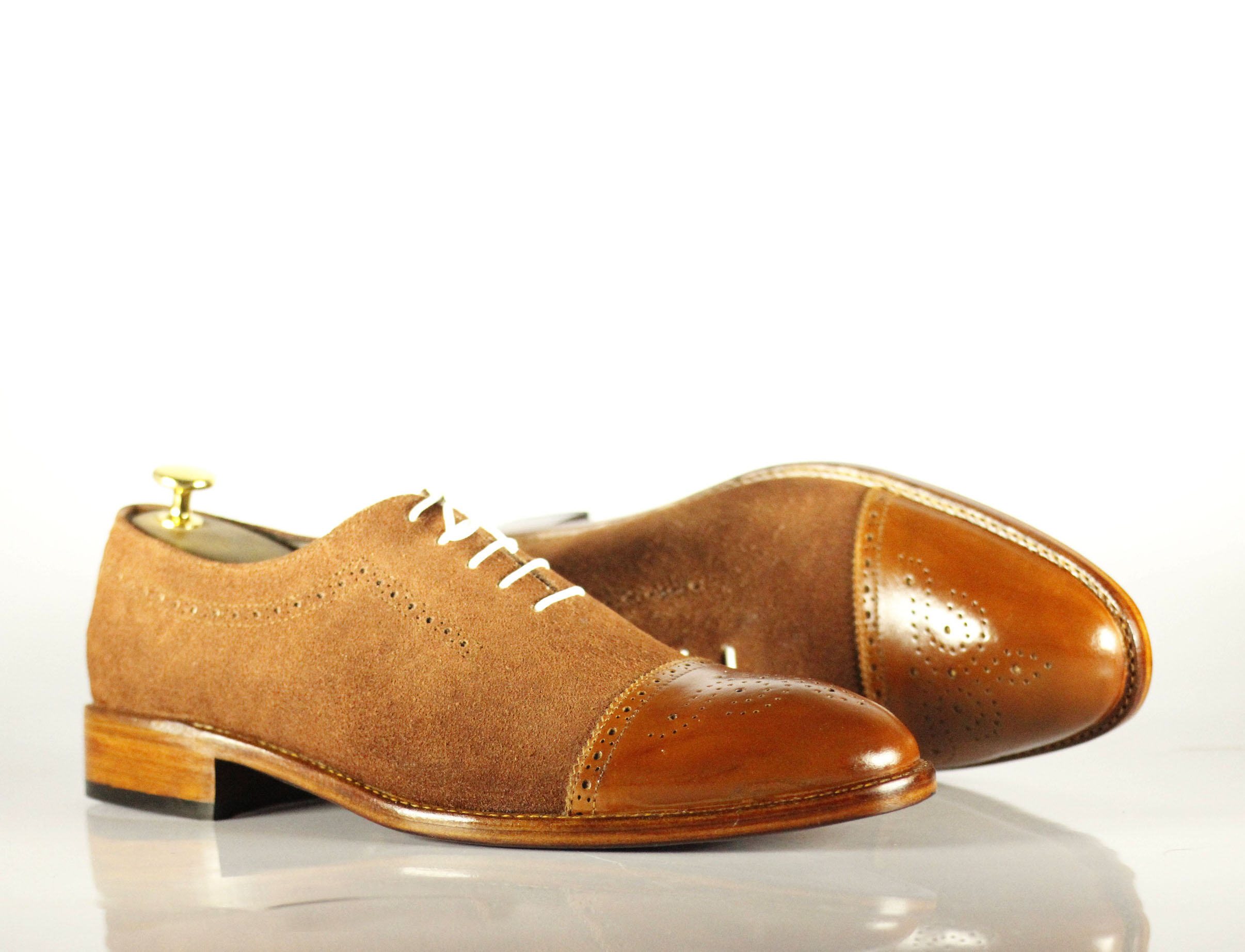 Stylish Handmade Tan Cap Toe Suede Leather Lace Up Shoes