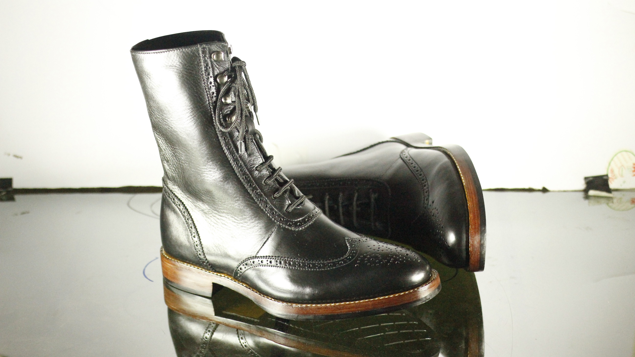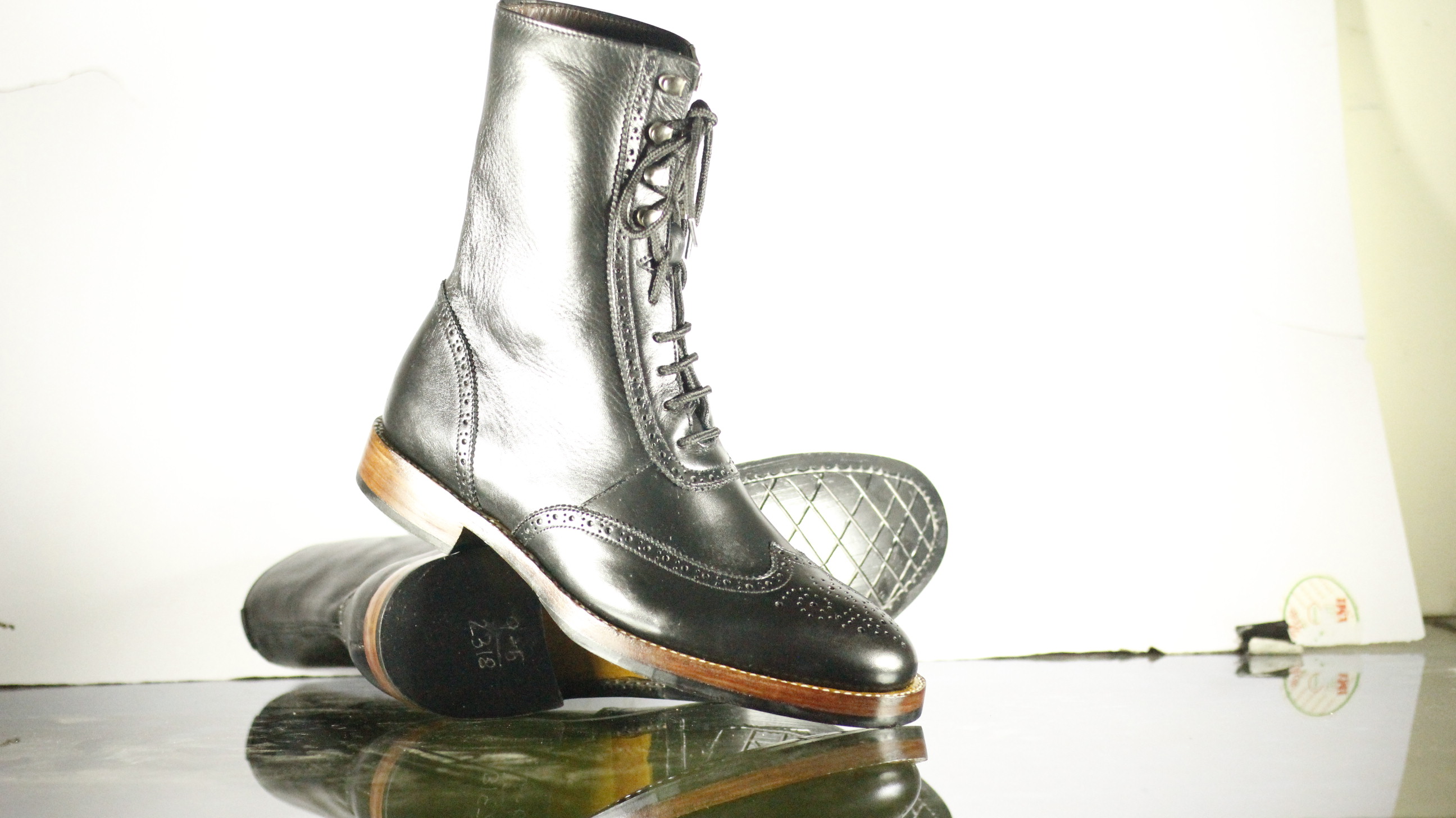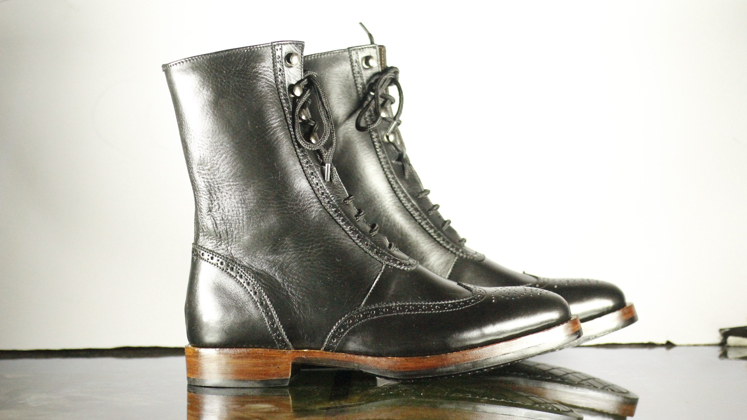 Classy Wing Tip Black Ankle High Lace Up Leather Men's Boot