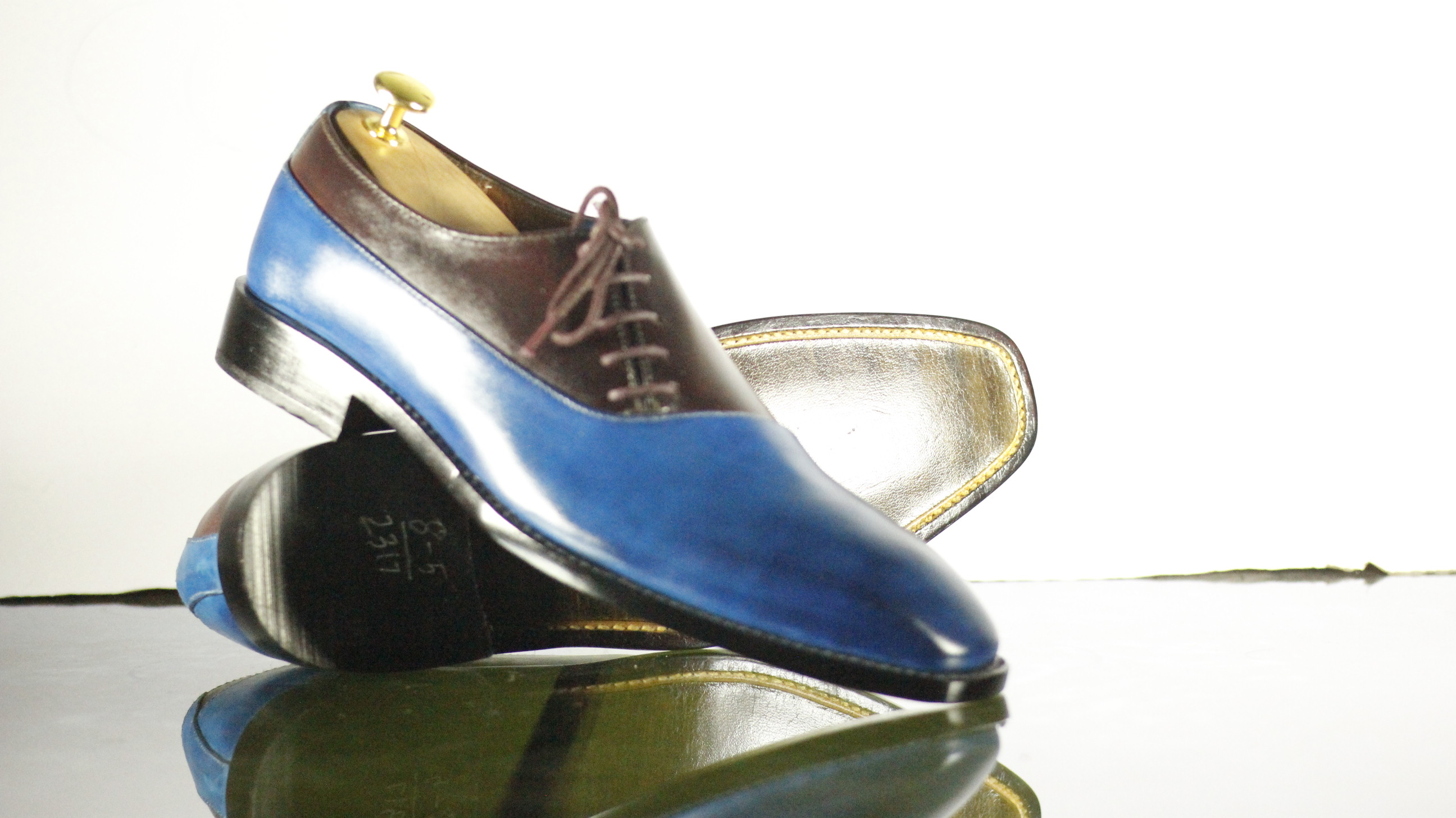 Beautiful Blue Cordovan Side Lace Up Whole Cut Leather Shoes