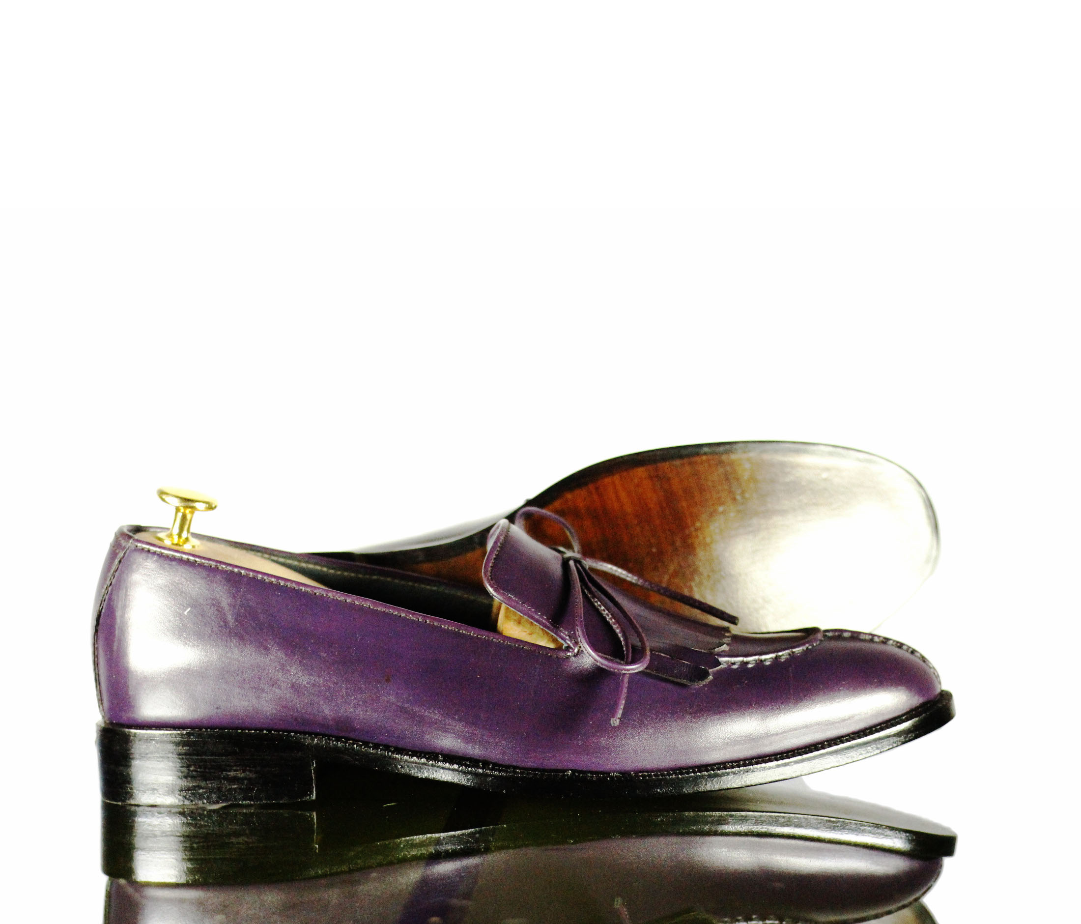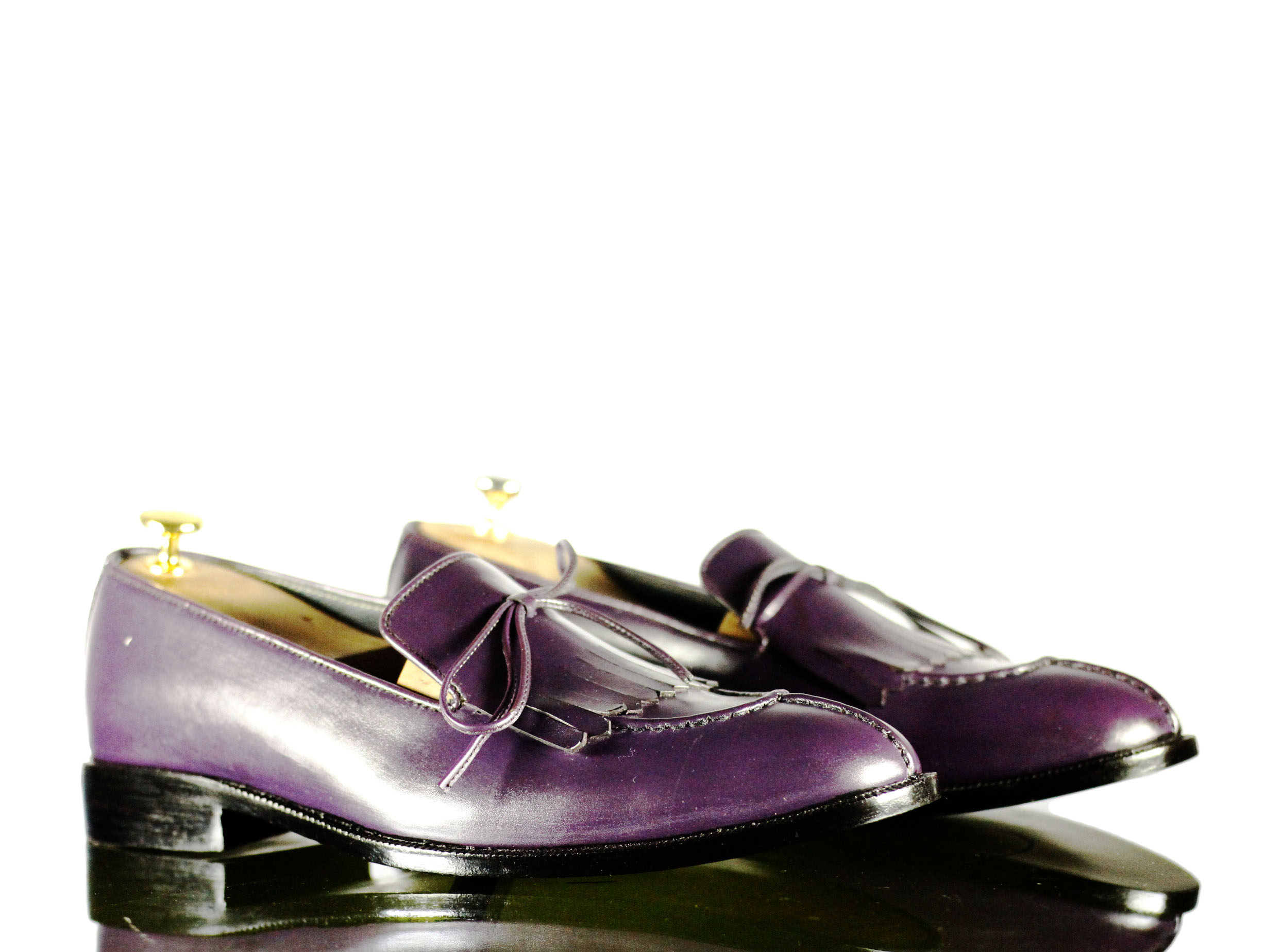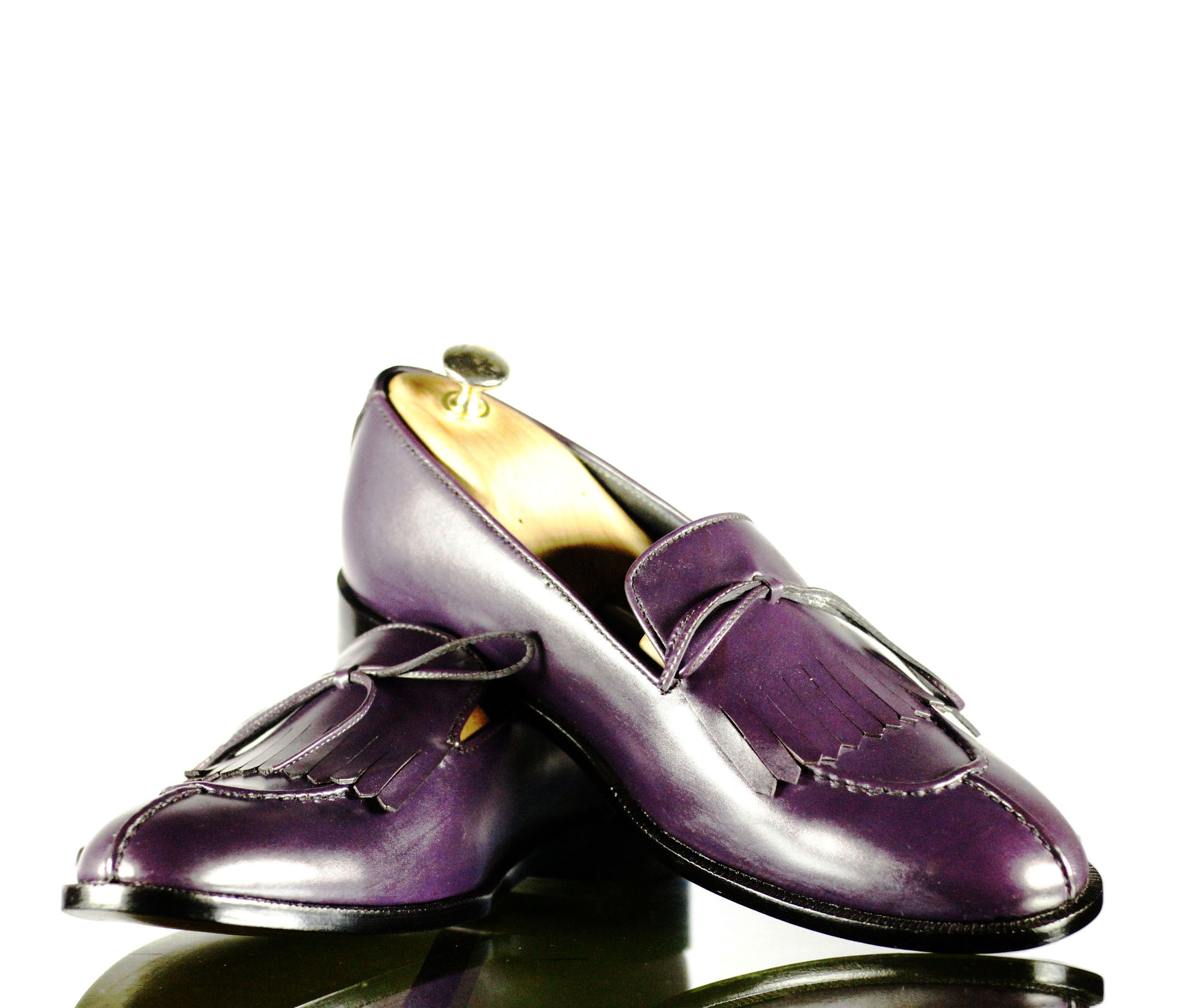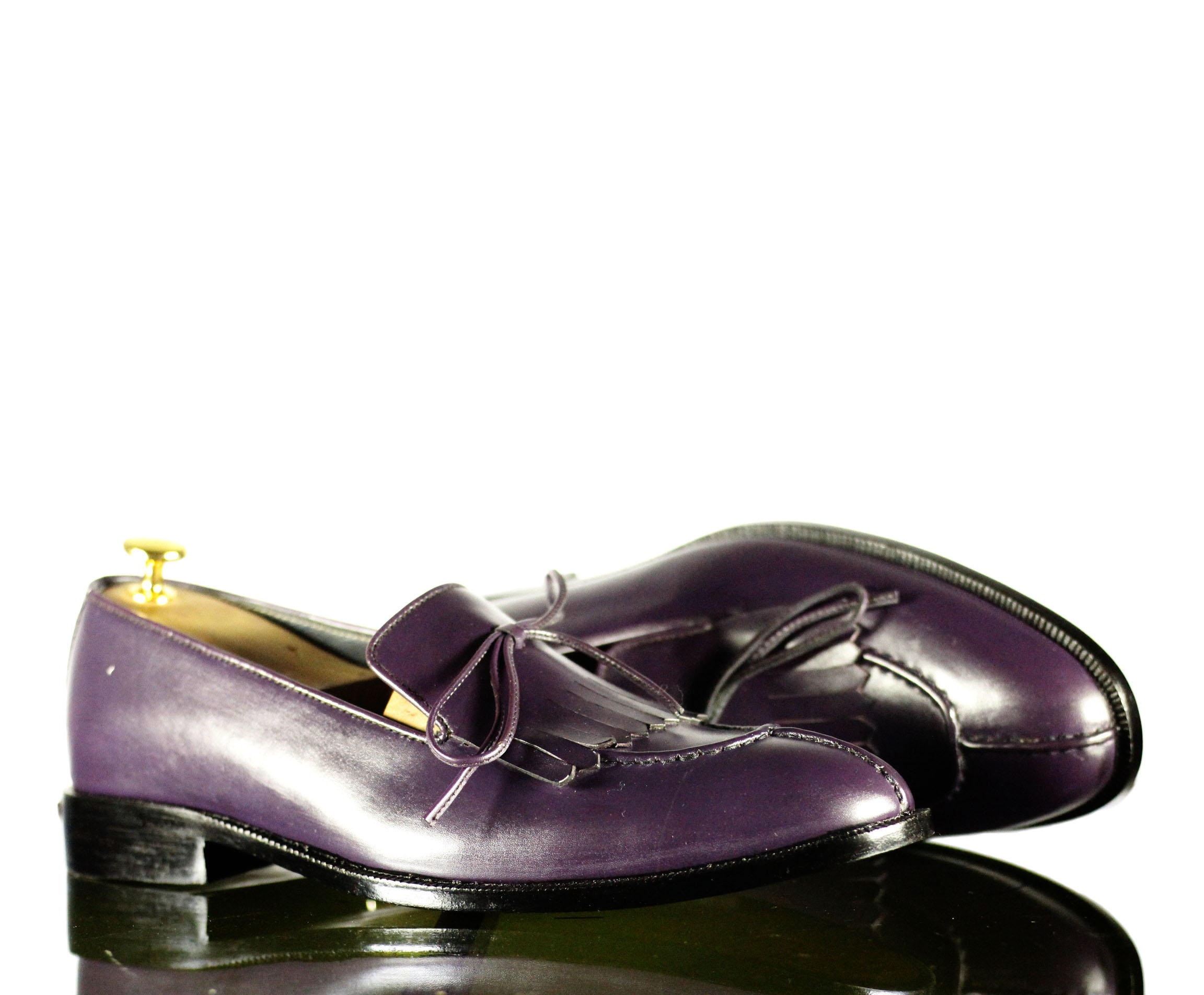 Fringe Style Split Toe Purple Moccasin Leather Loafers