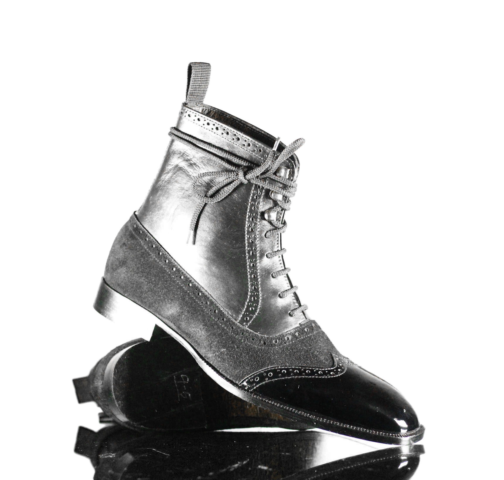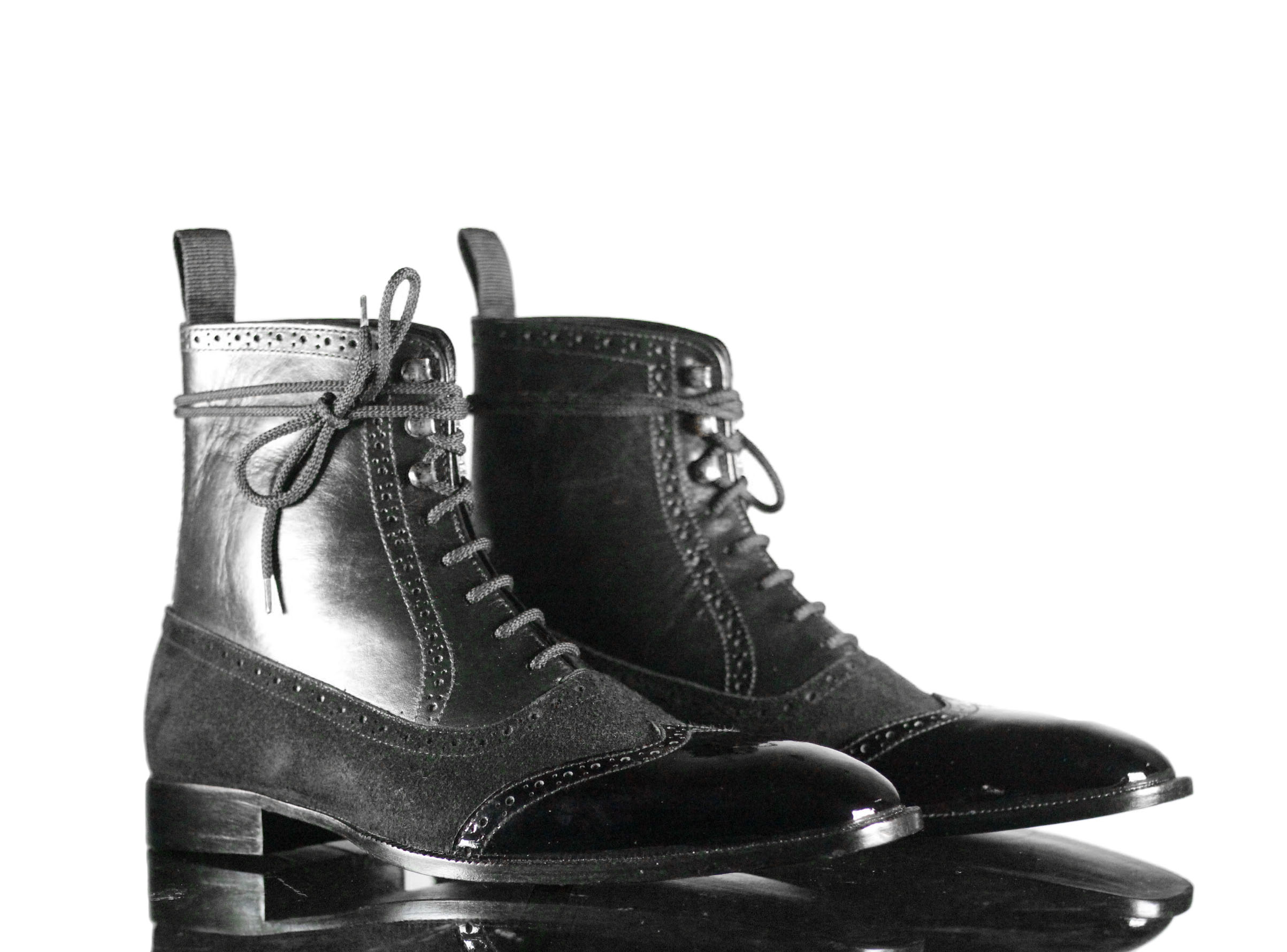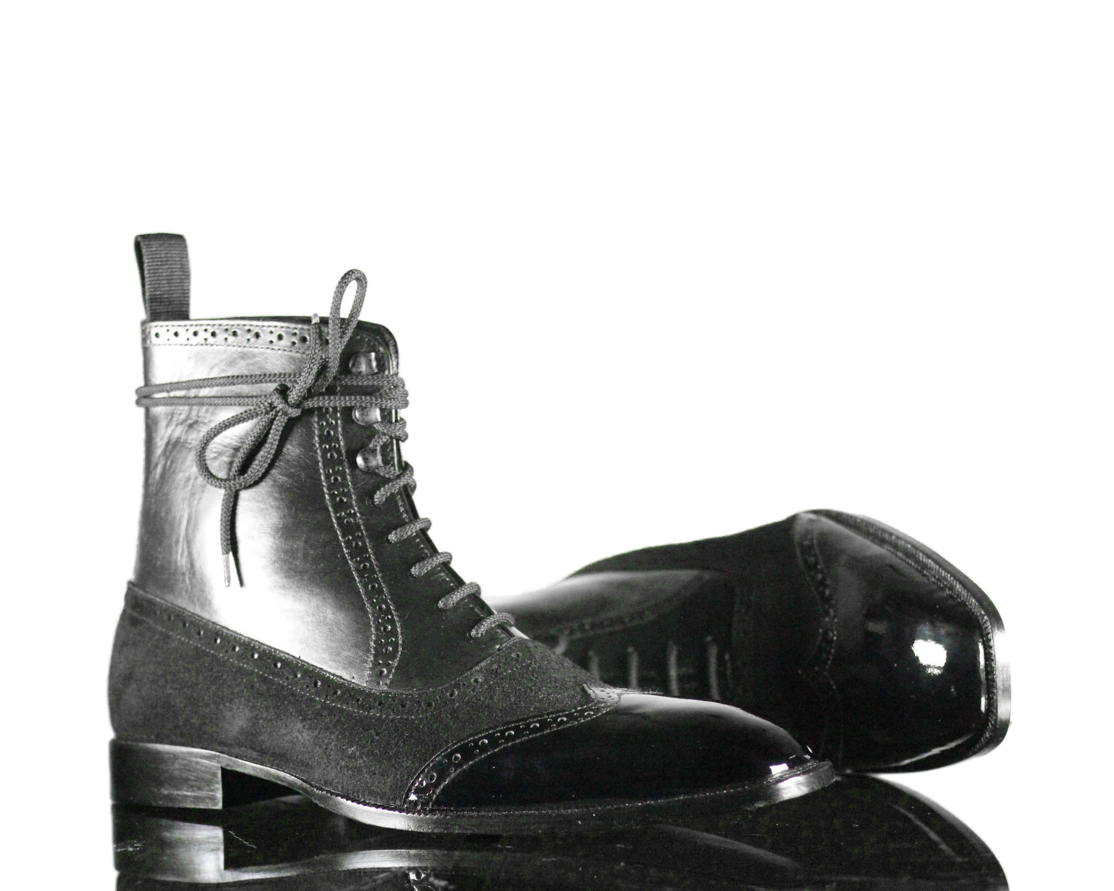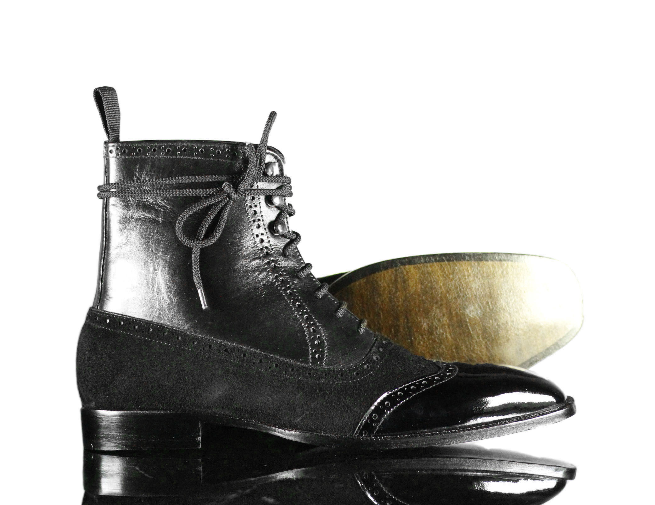 Designer Black Wing Tip Lace Up Suede Leather Brogue Boot