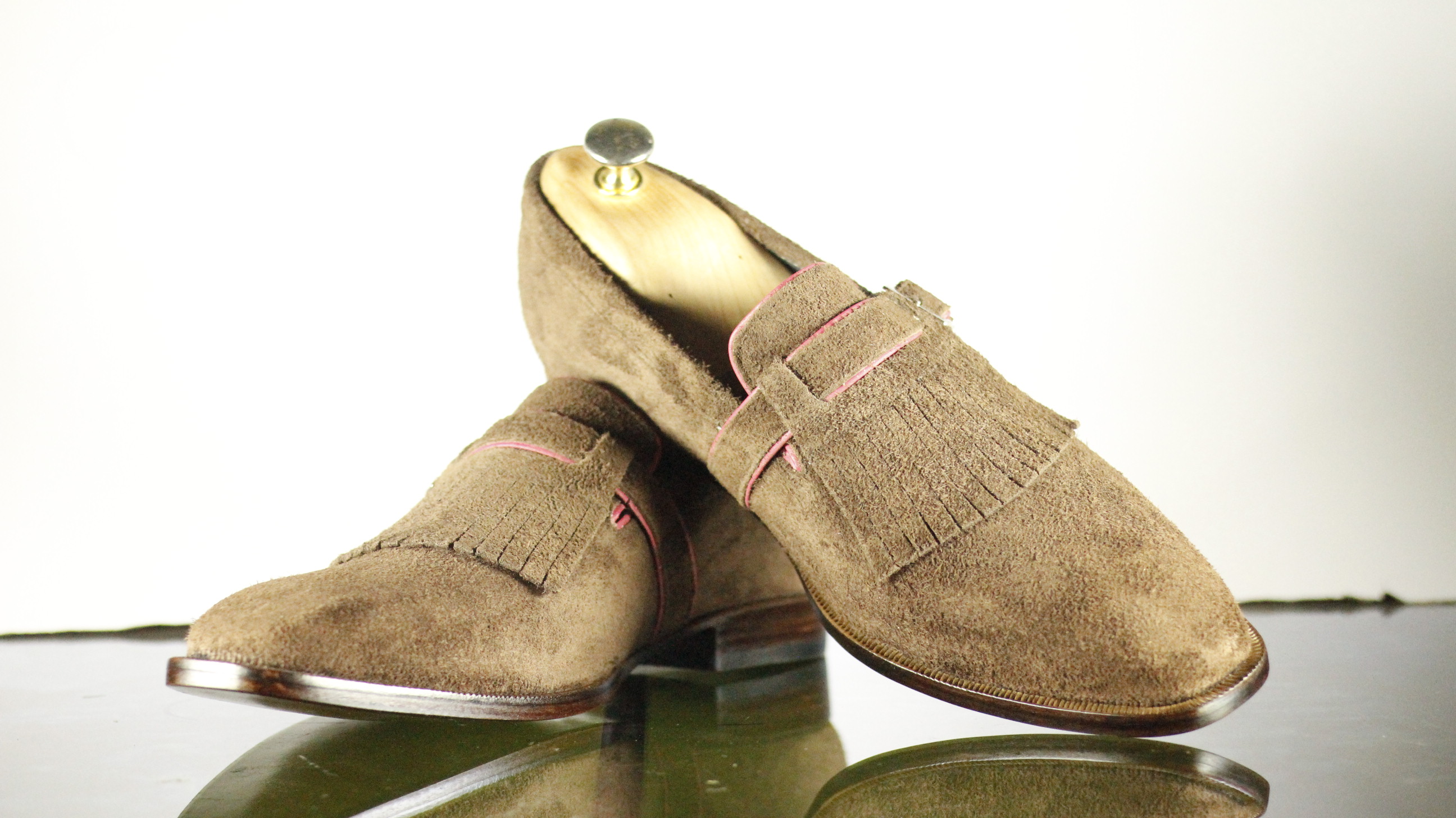 Brown Fringe Style Buckle Strap Moccasin Leather Suede Loafers