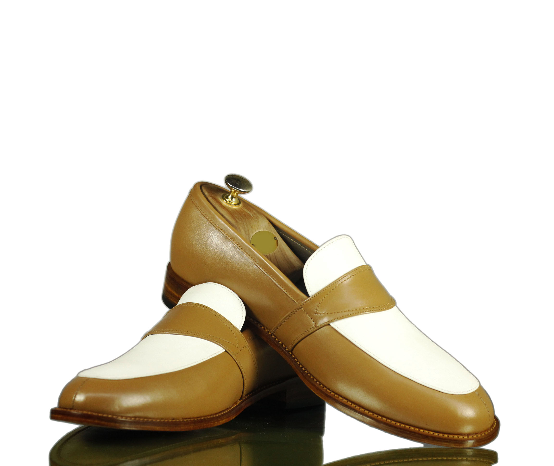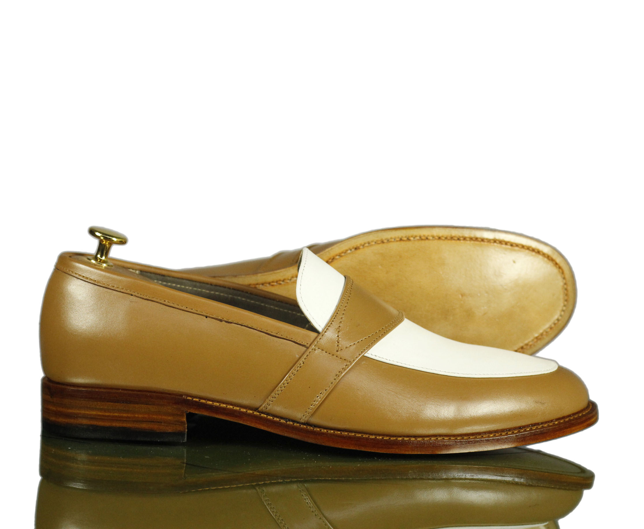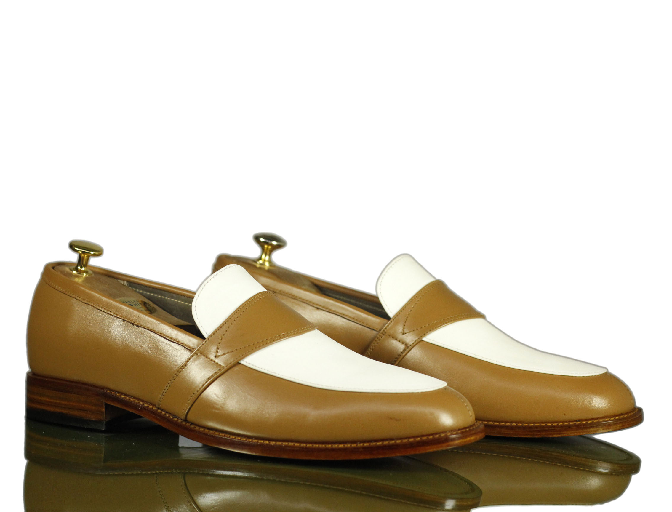 Tan White Two Tone Slip On Leather Moccasin Men's Loafer