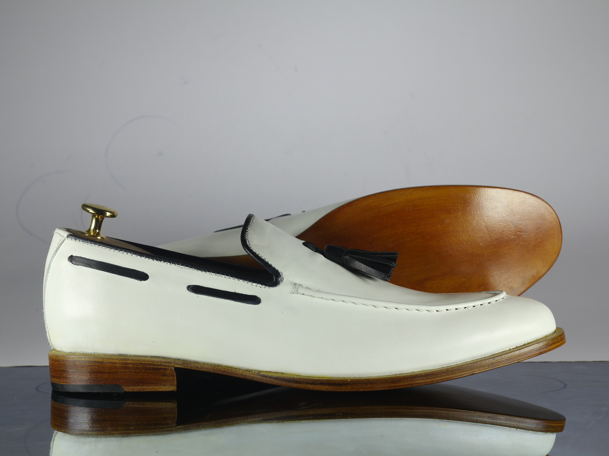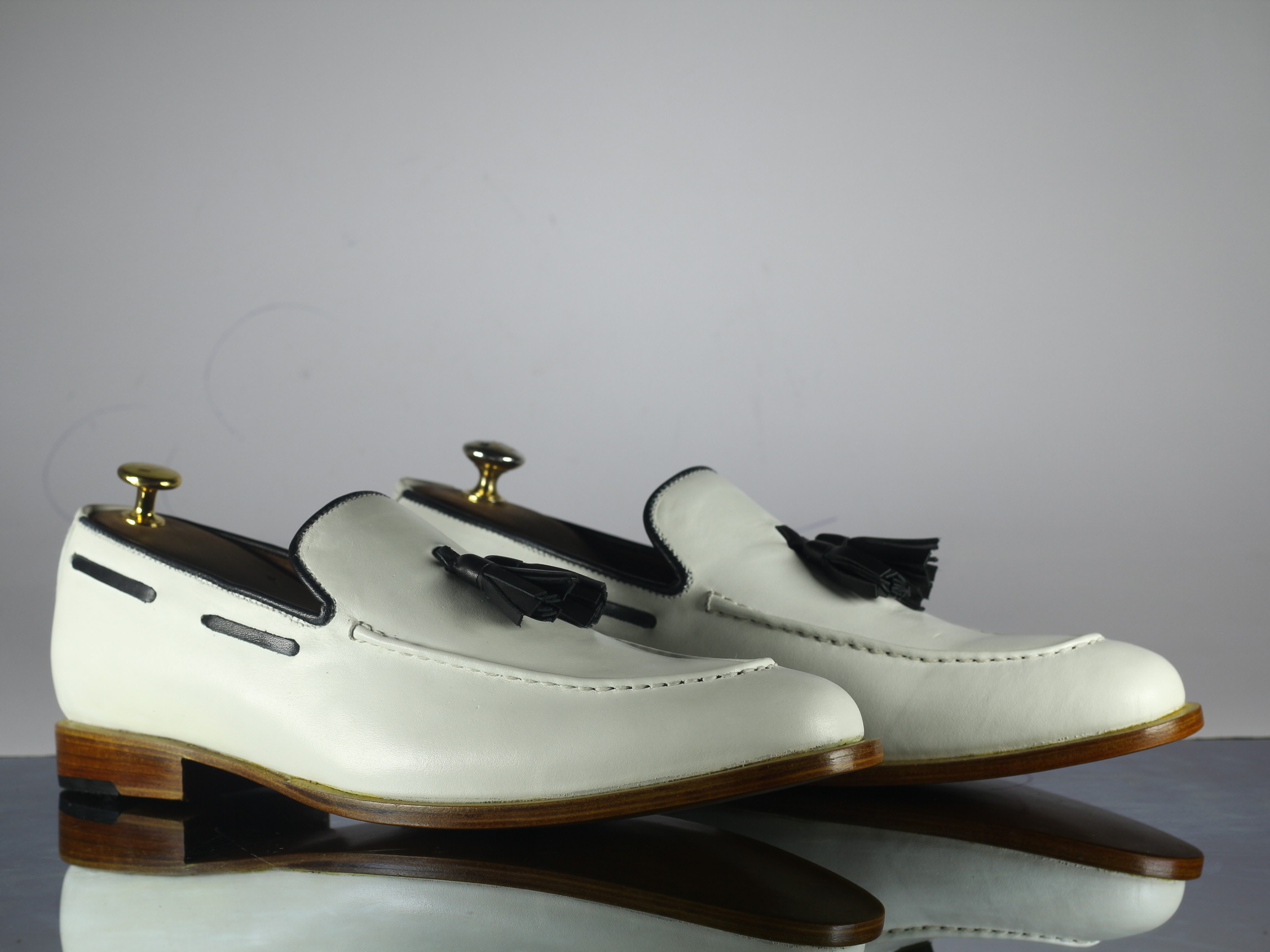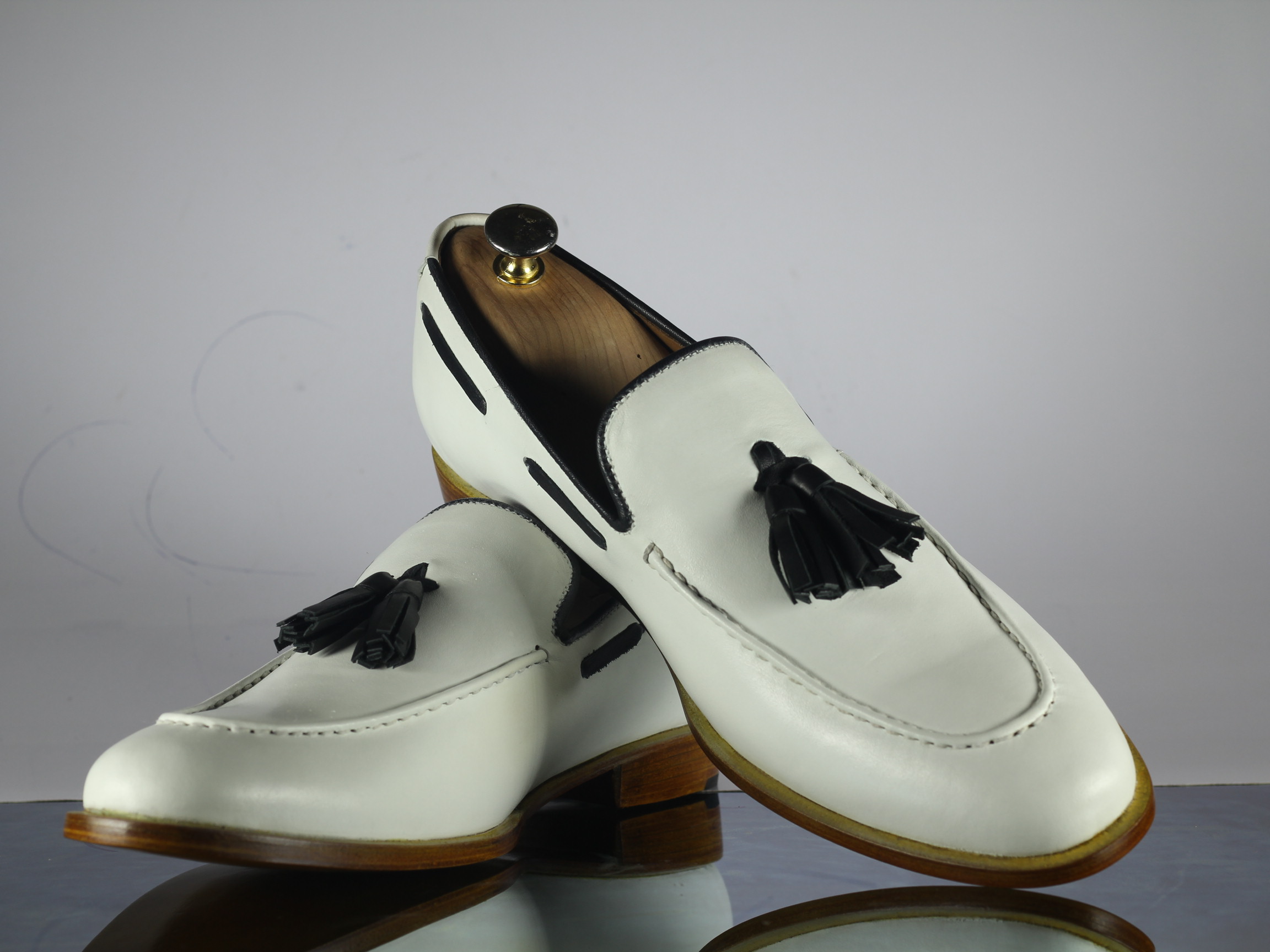 Round Toe White Tasseled Hand Painted Beautiful Leather Loafer