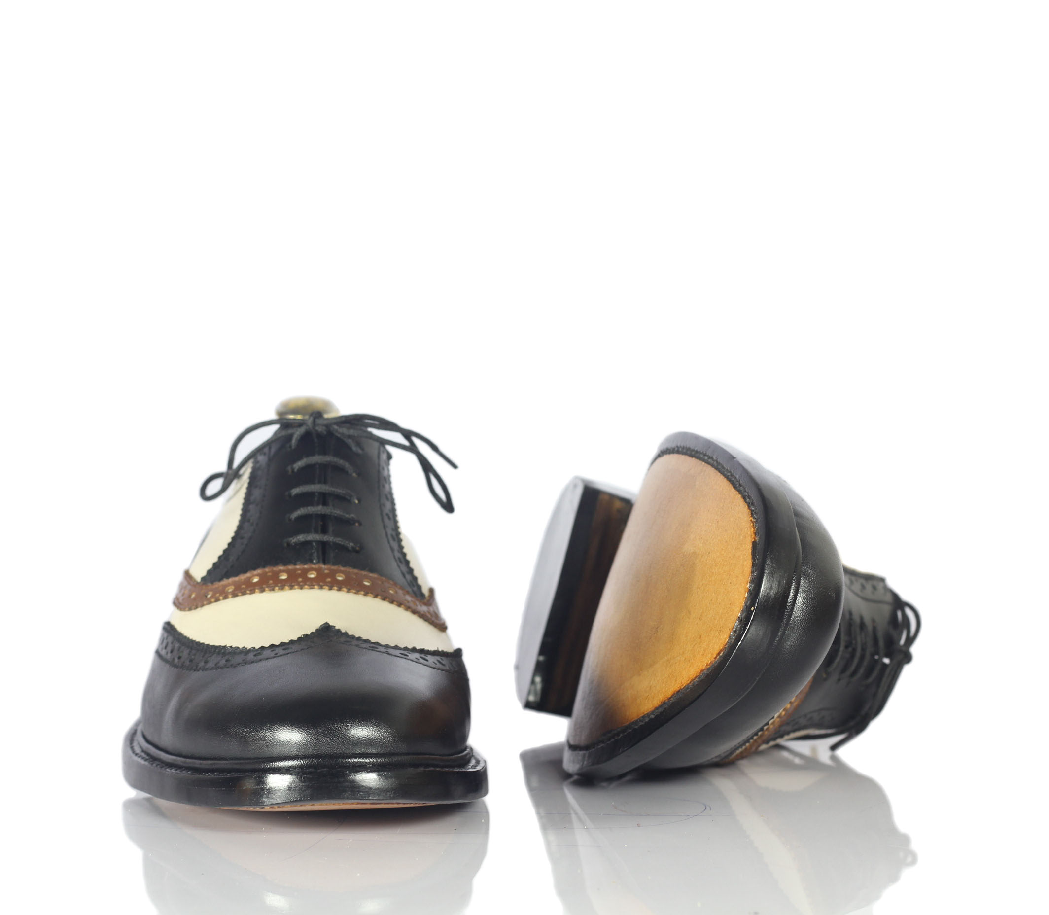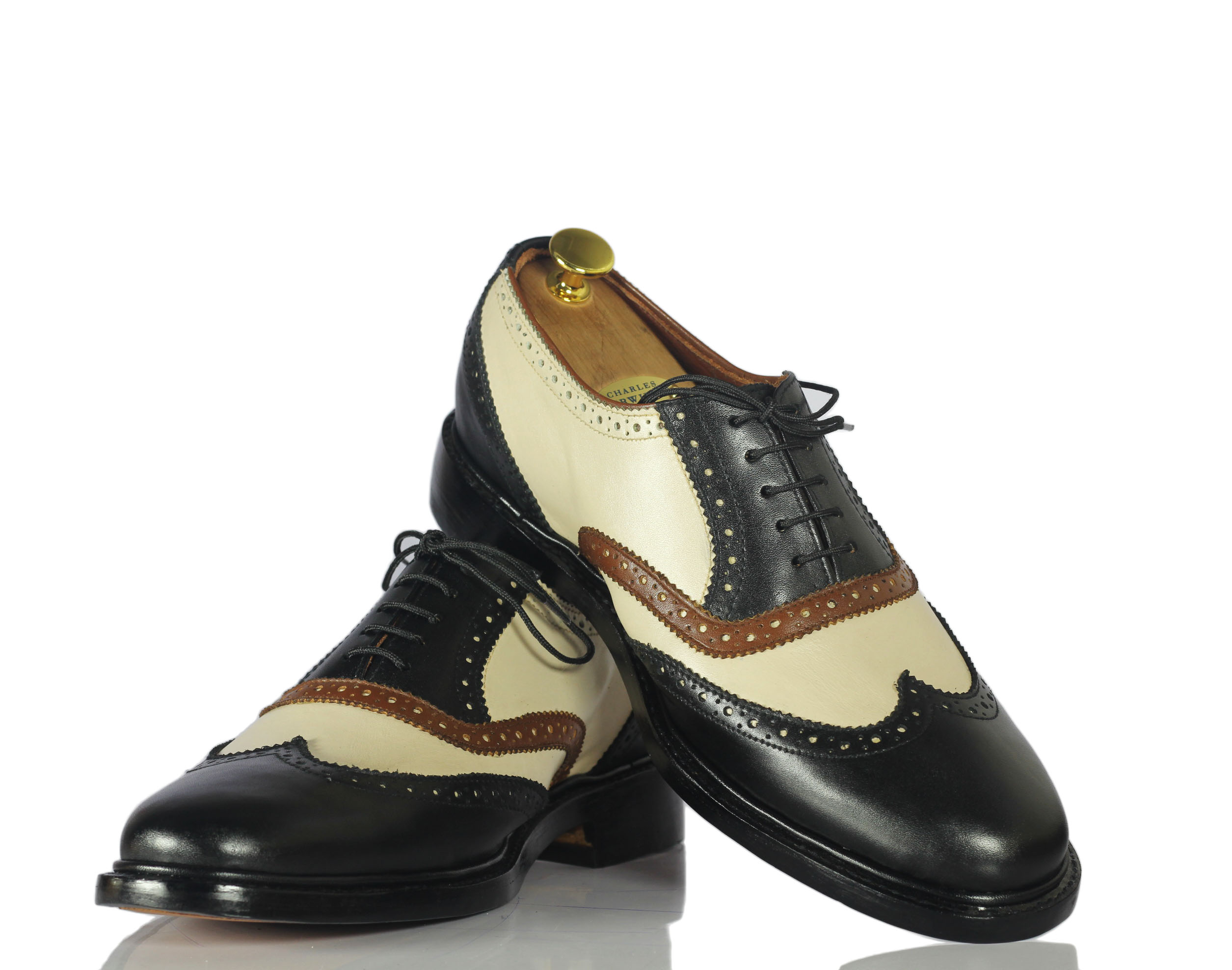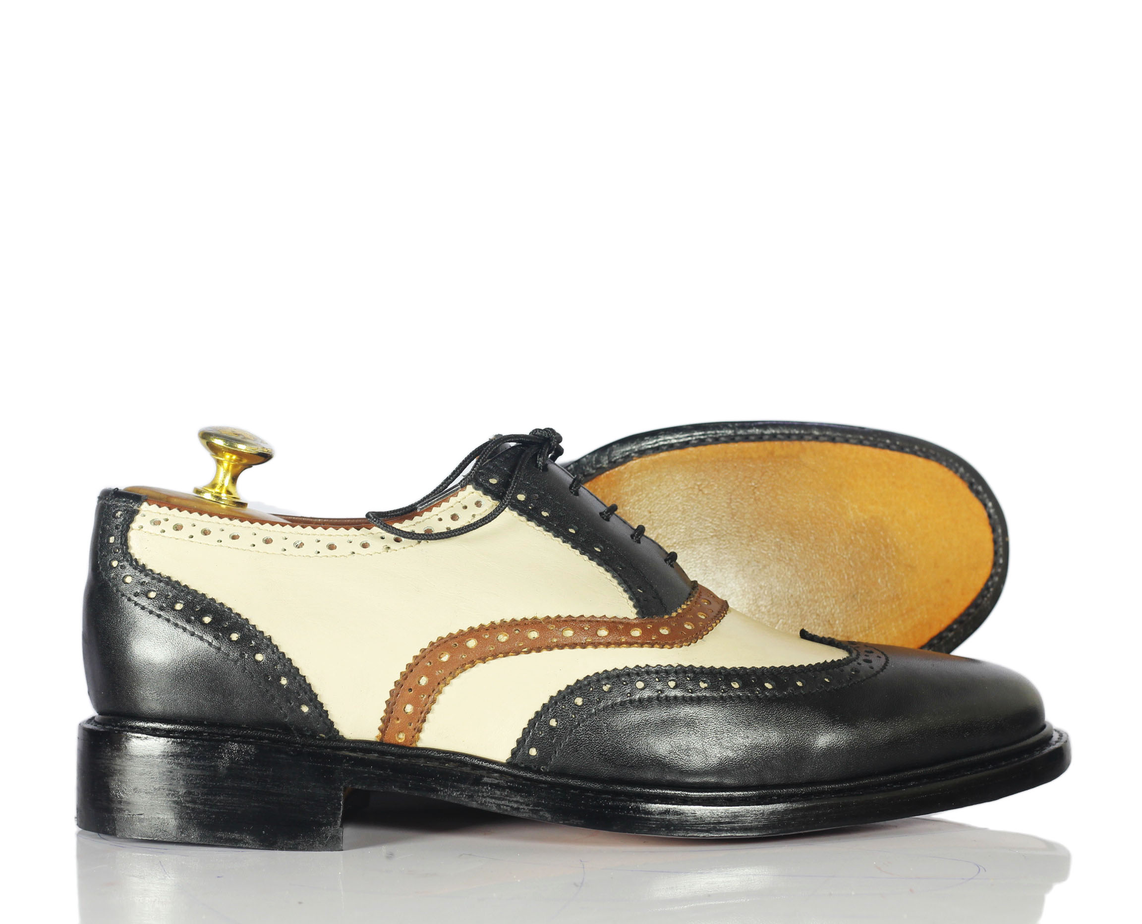 Wing Tip Black & Off White Lace Up Brogue Leather Shoes