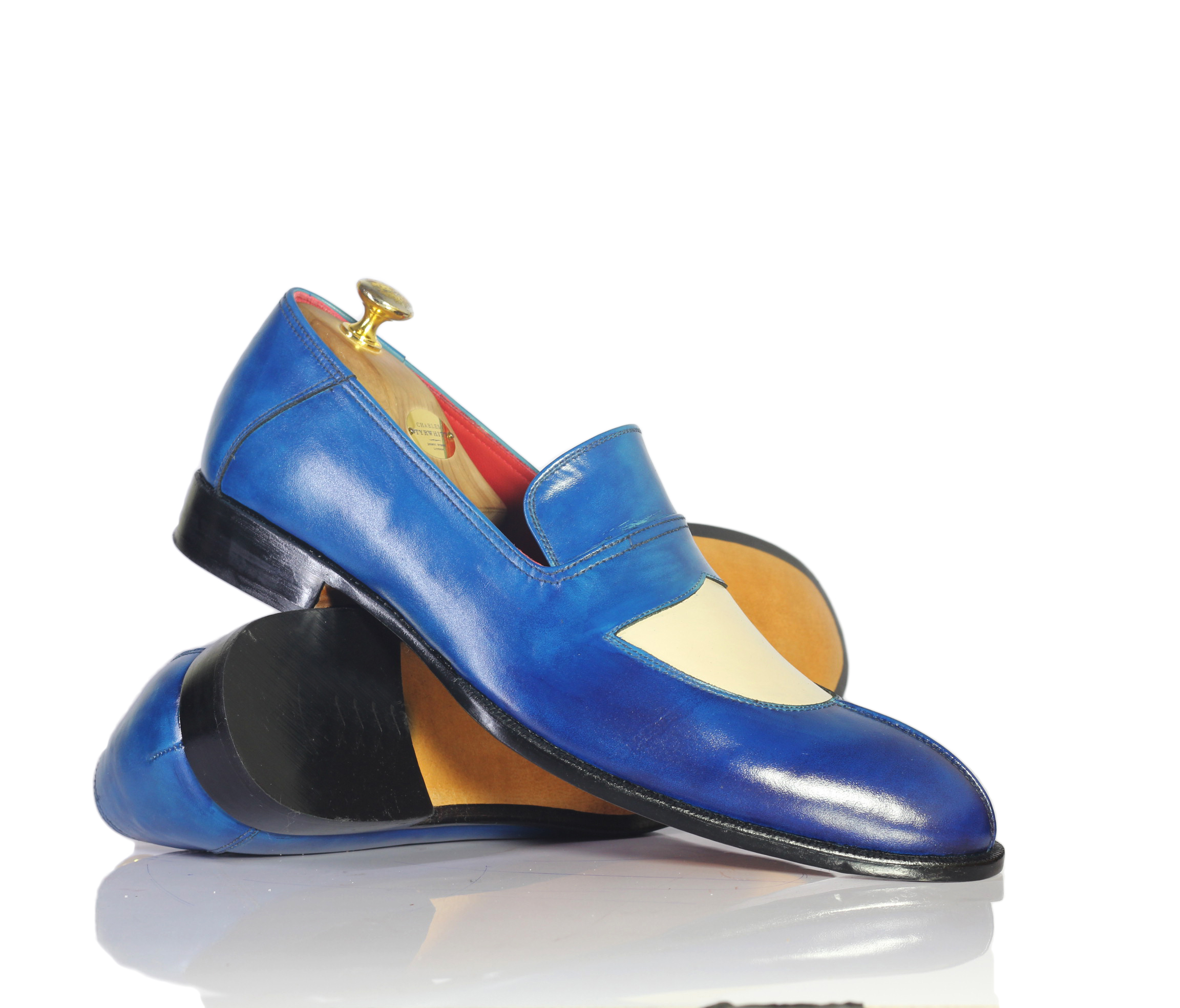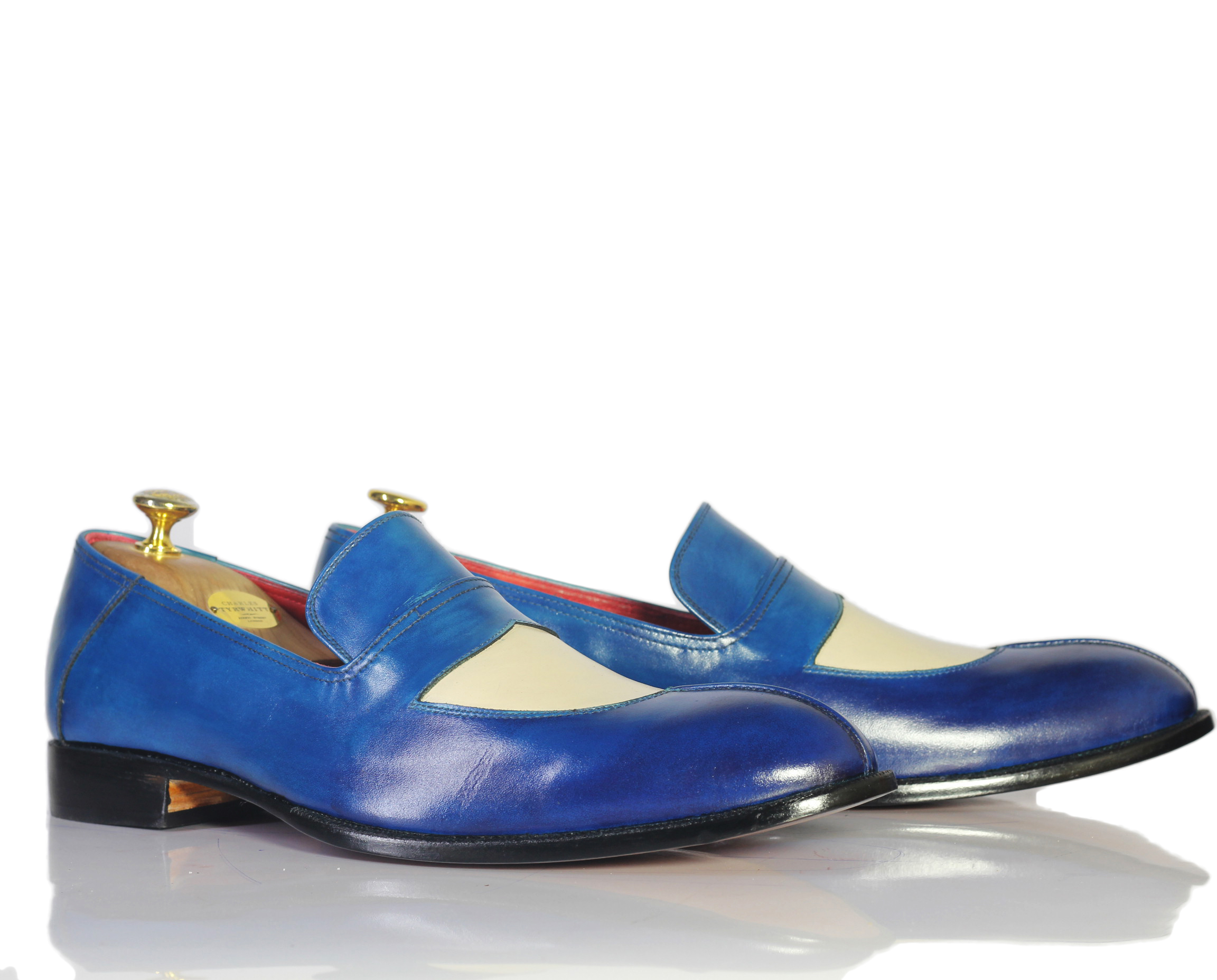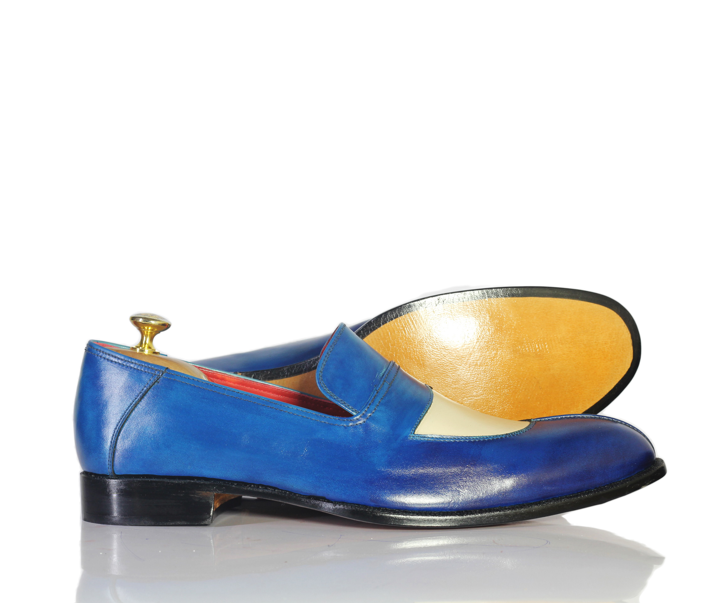 Beautiful Blue White Split Tow Leather Moccasin Loafers