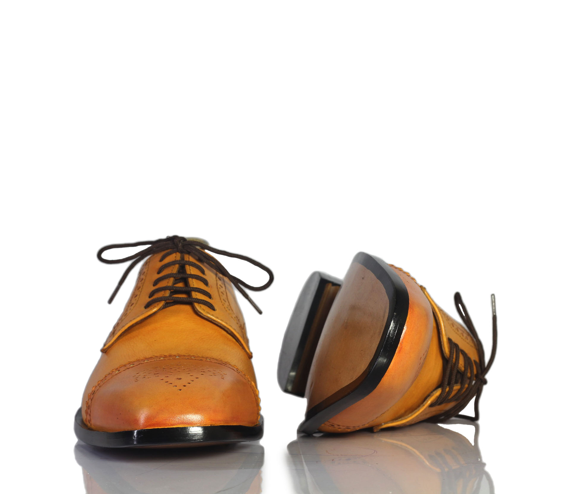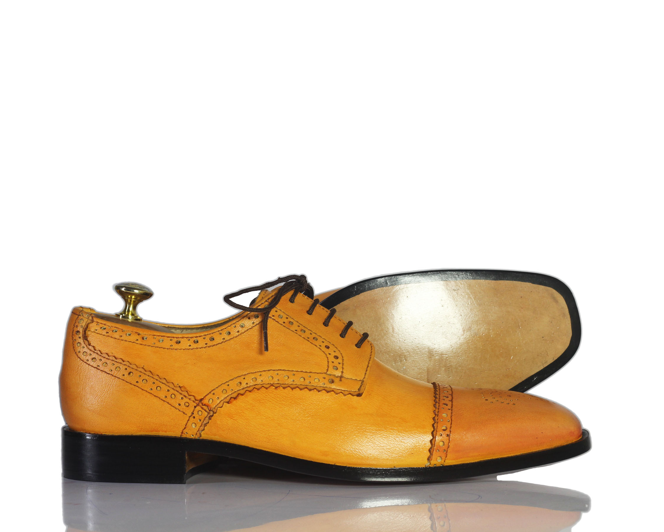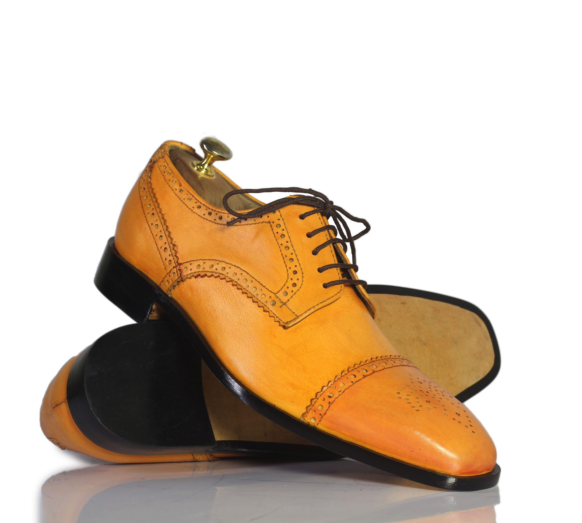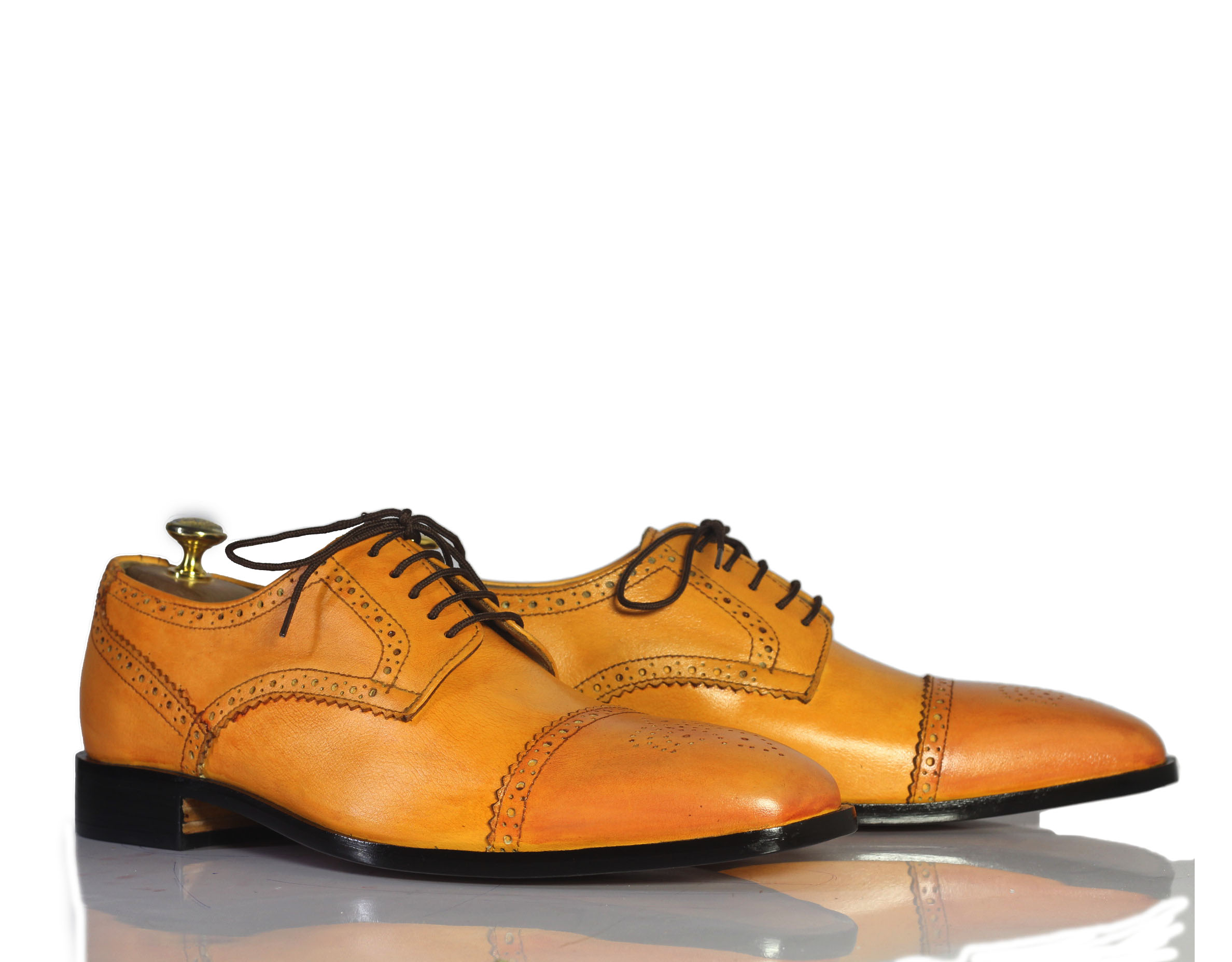 Classy Tan Cap Toe Brogue Lace Up Leather Shoes