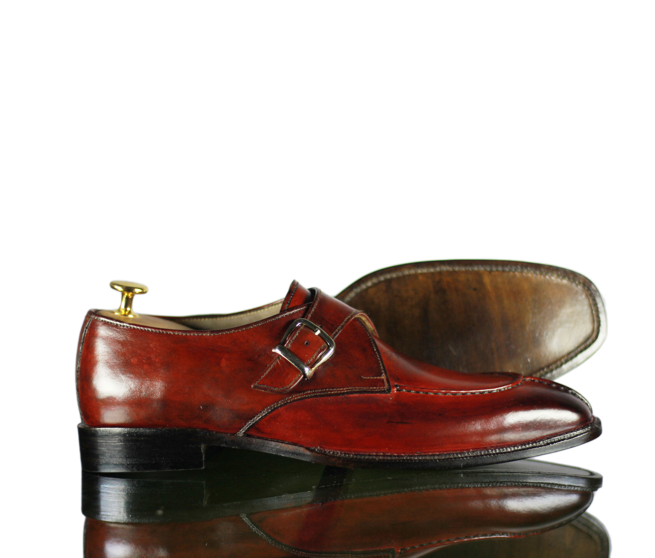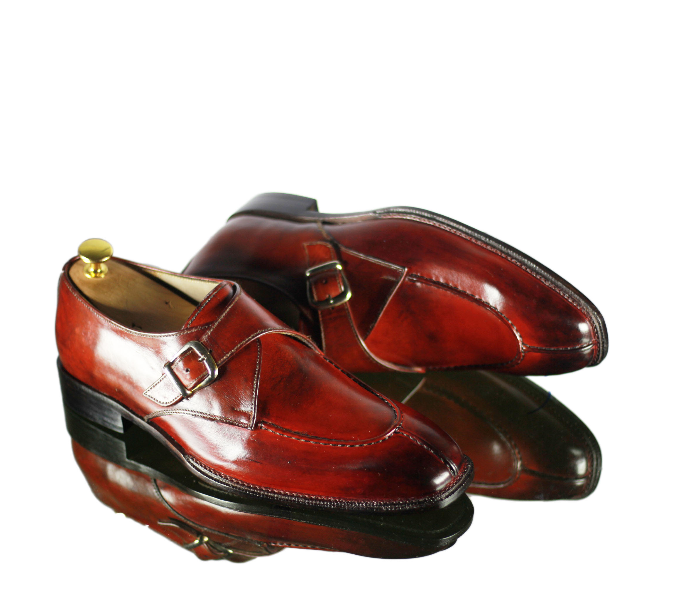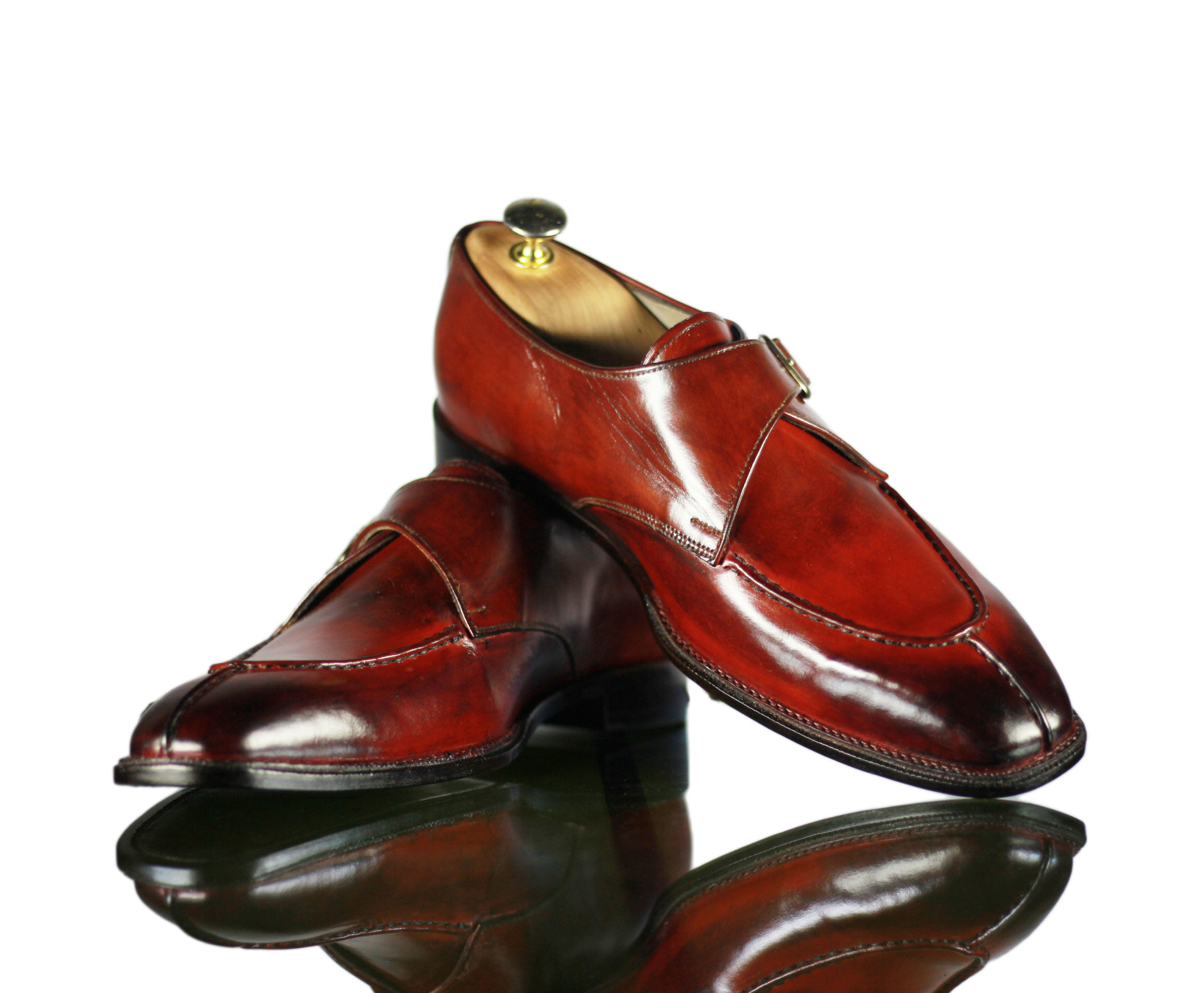Side Buckle Attractive Split Toe Burgundy Leather Slip On Shoes