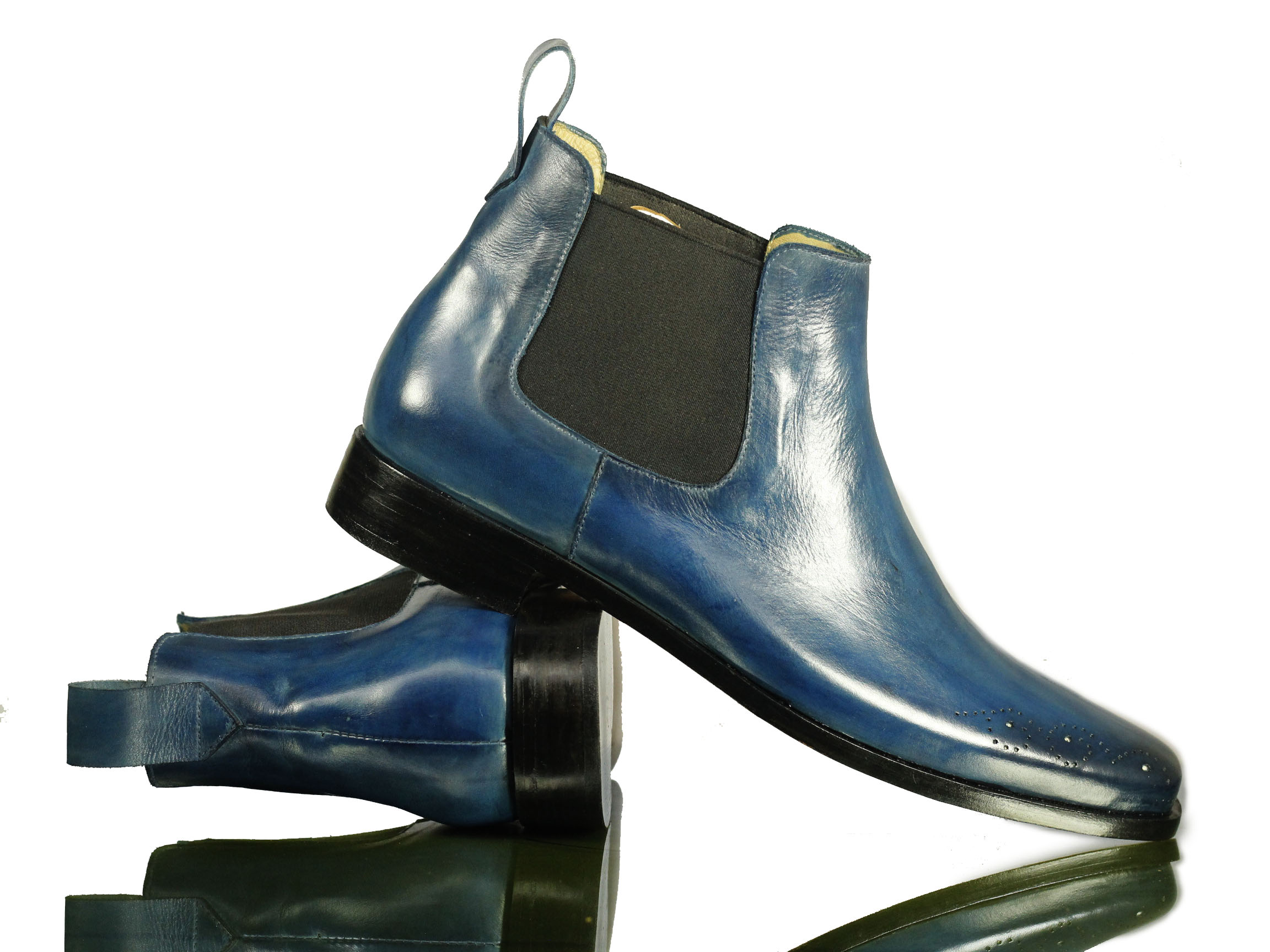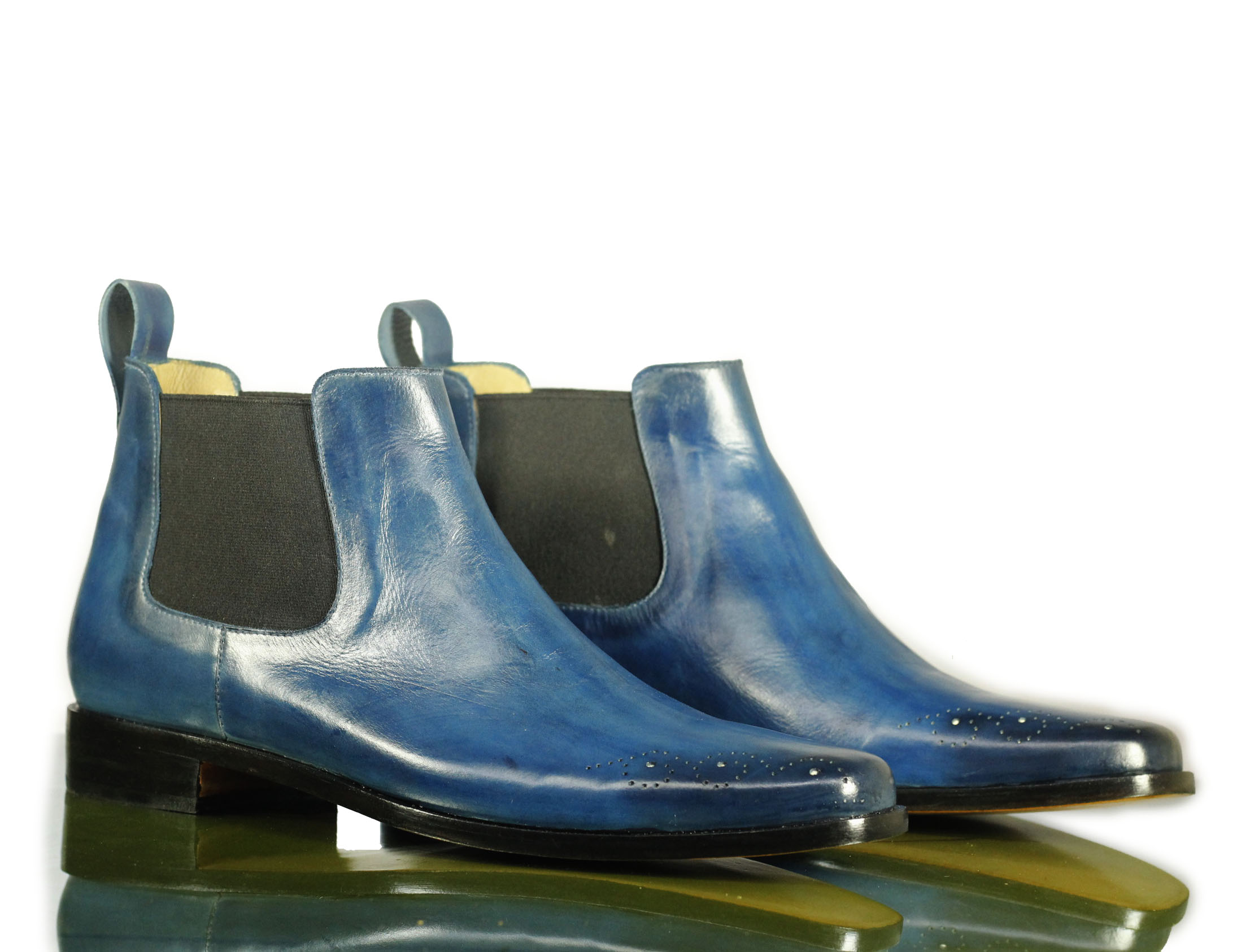 Elegant Blue Half Ankle Chelsea Leather Boot For Men