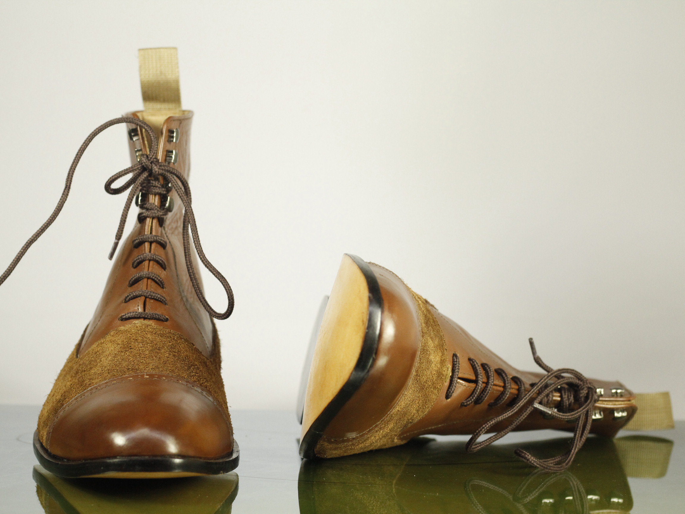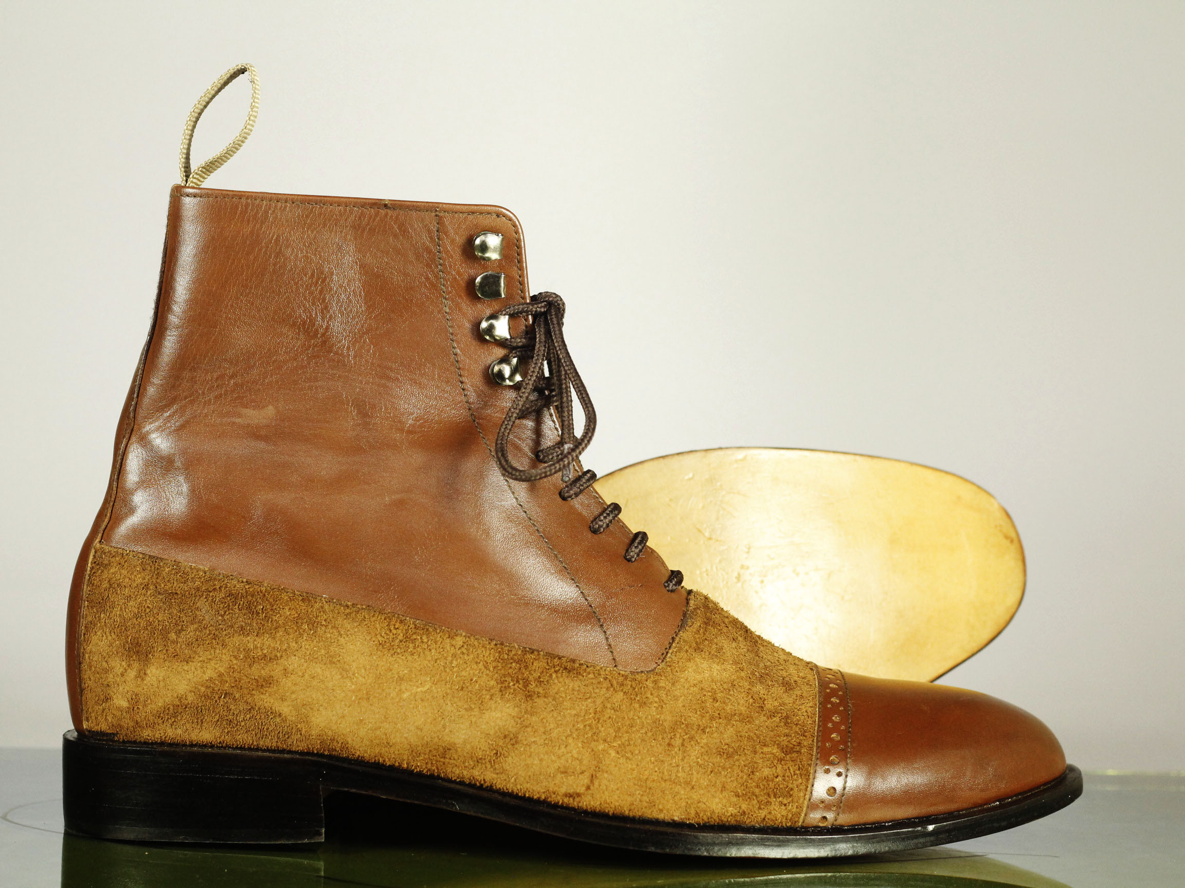 Men's Cap Toe Tan Lace Up Brogue Ankle High Leather Suede Boot