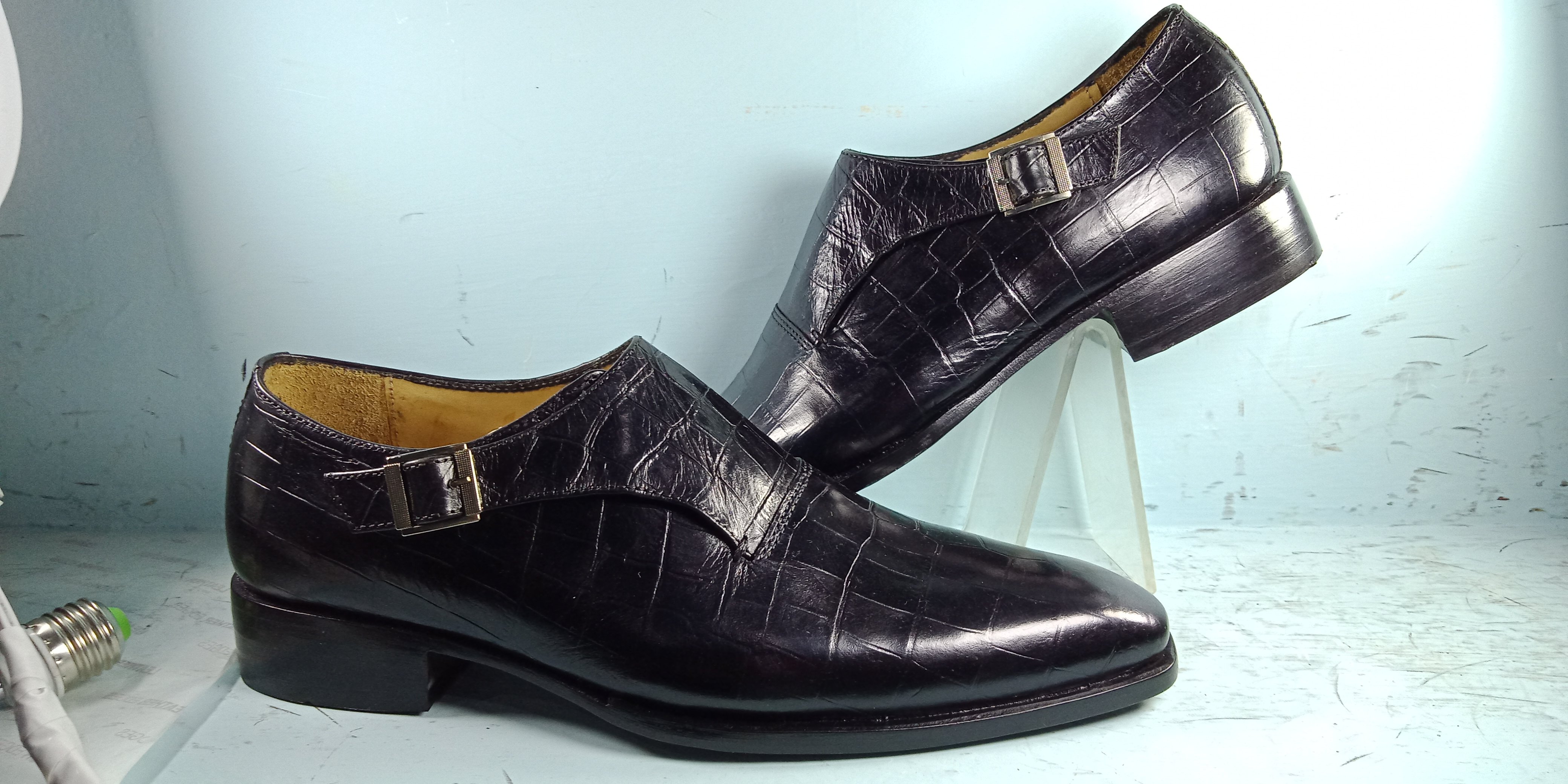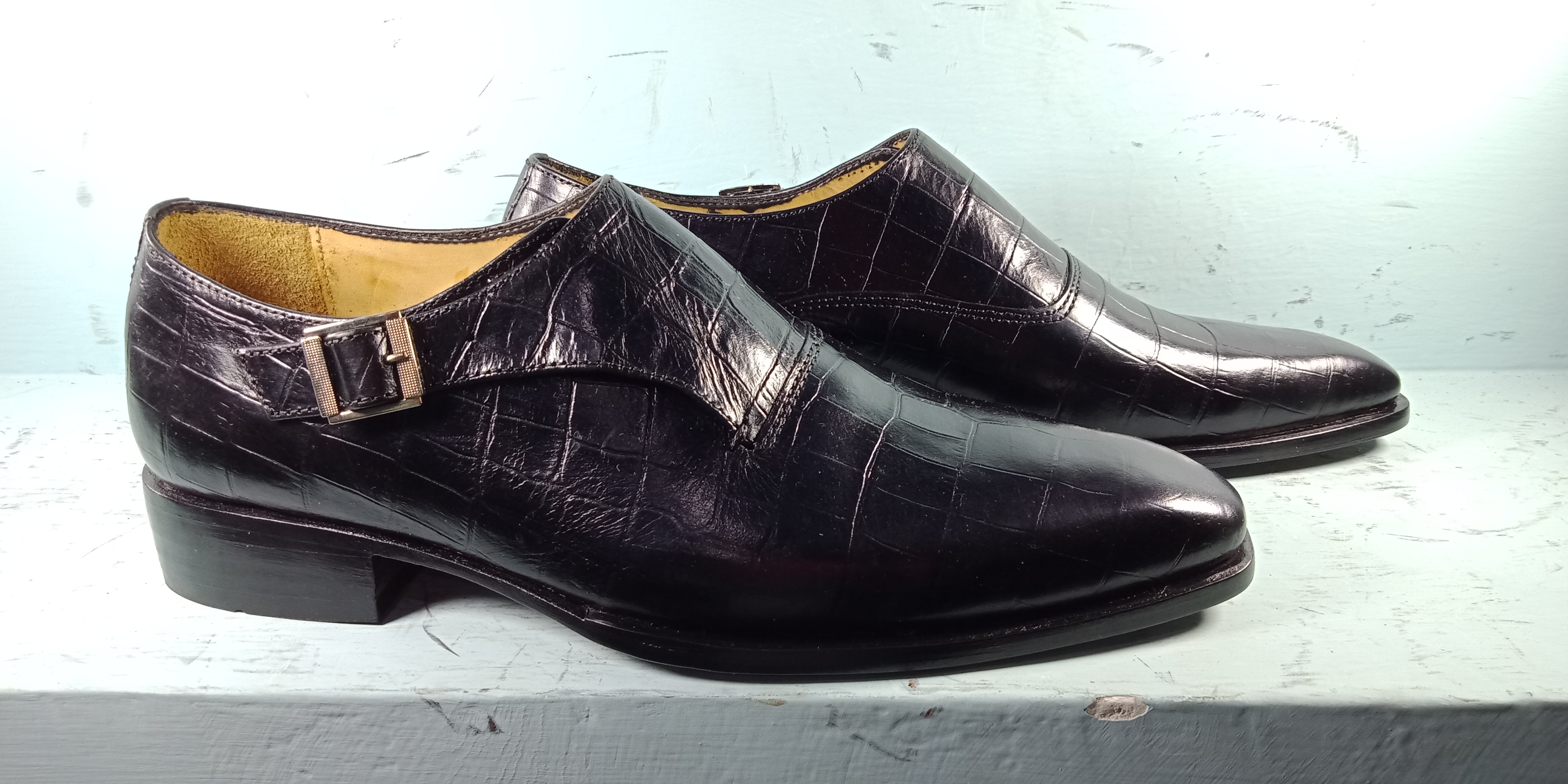 Side Monk Alligator Classical Genuine Leather Shoes For Men