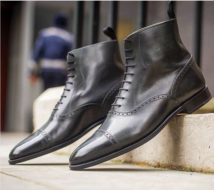Oxford Black Ankle Cap Toe Brogue Leather Boots For Men