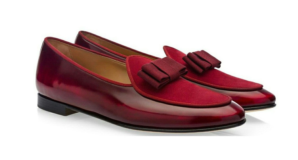Elegant Burgundy Bow Style Round Toe Moccasin Leather Suede Loafers