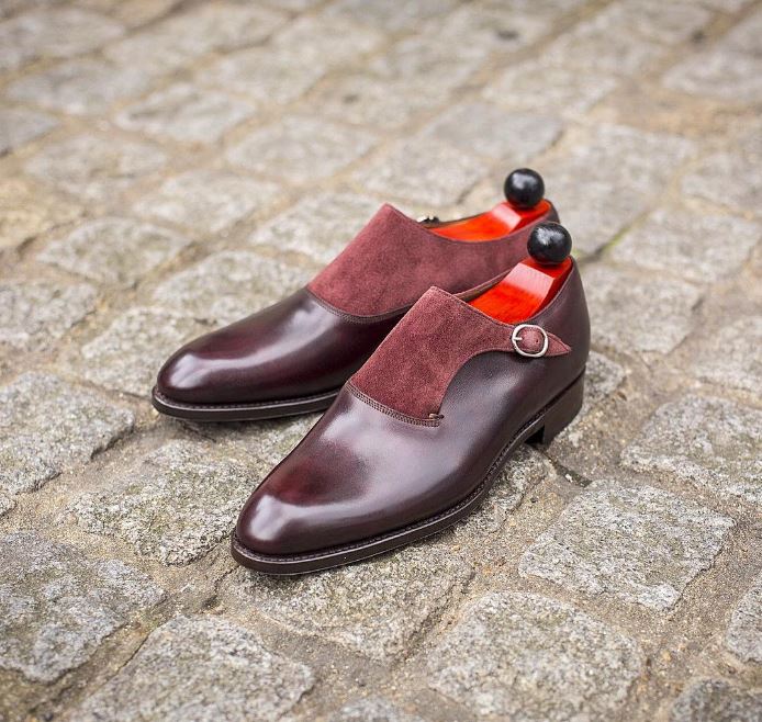 Cordovan Side Buckle Leather Suede Leather Foot Wear For Men