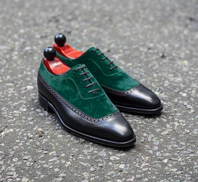 Beautiful Black Green Square Toe Brogue Lace Up Leather Suede Shoes