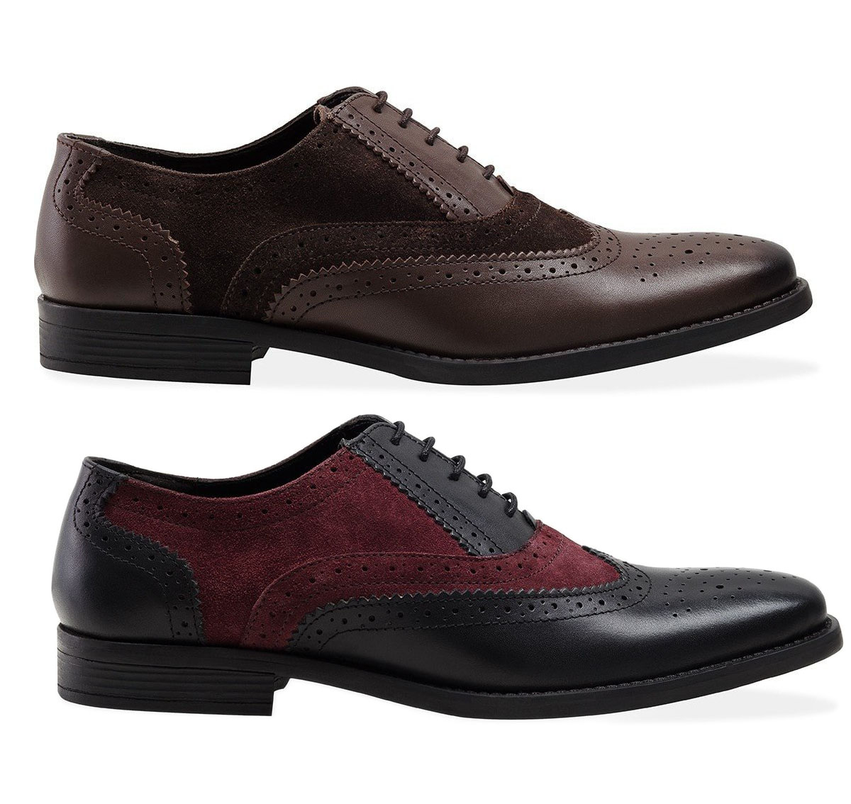 Classy Cordovan Wing Tip Leather Suede Lace up Shoes