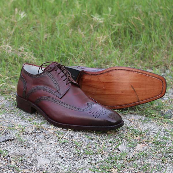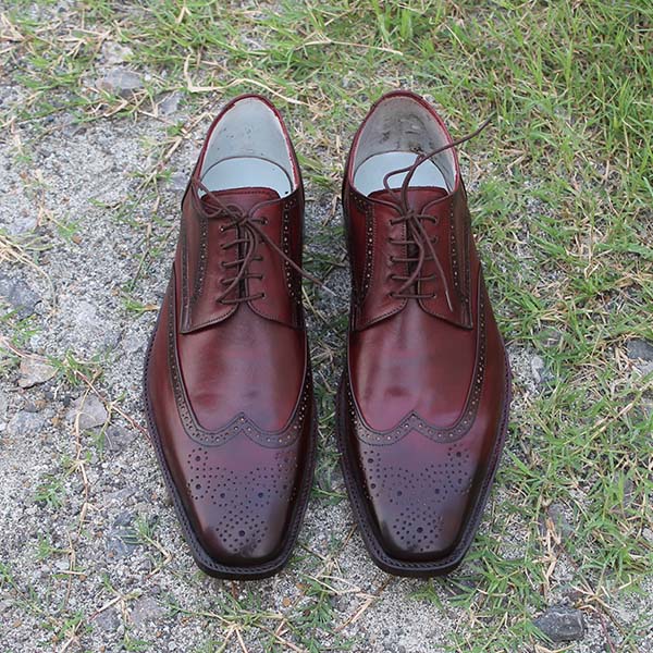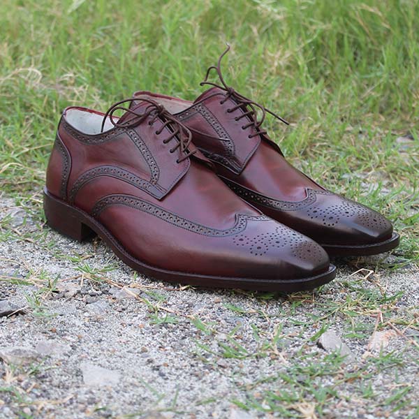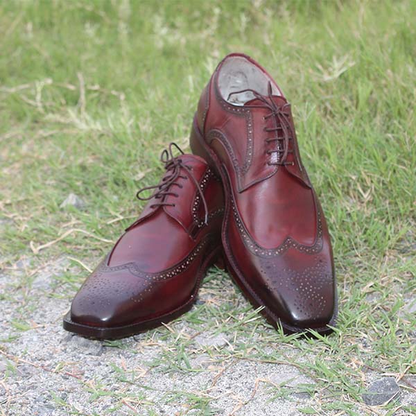New Handmade Brogue Burgundy Oxford Lace Up Leather Dress Formal Shoes