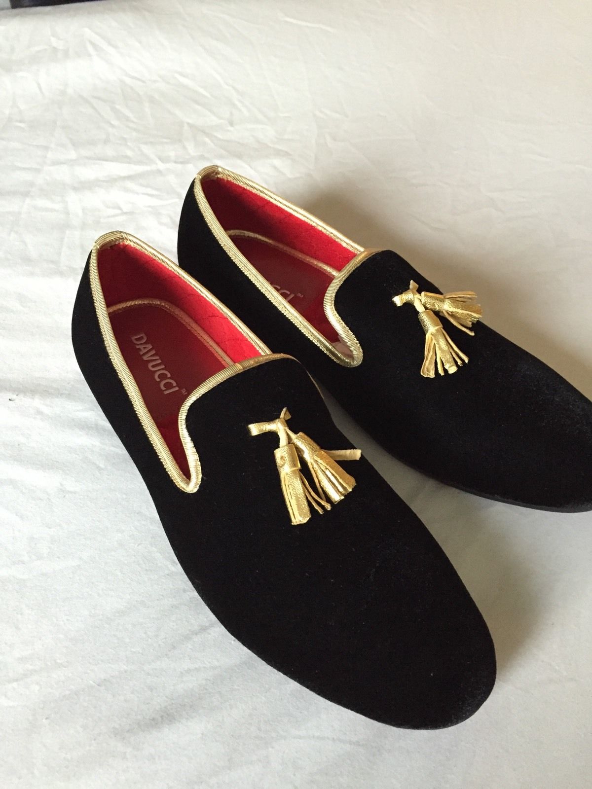 Slip On Pure Black Velvet Tasseled Leather Loafers Moccasin For Men