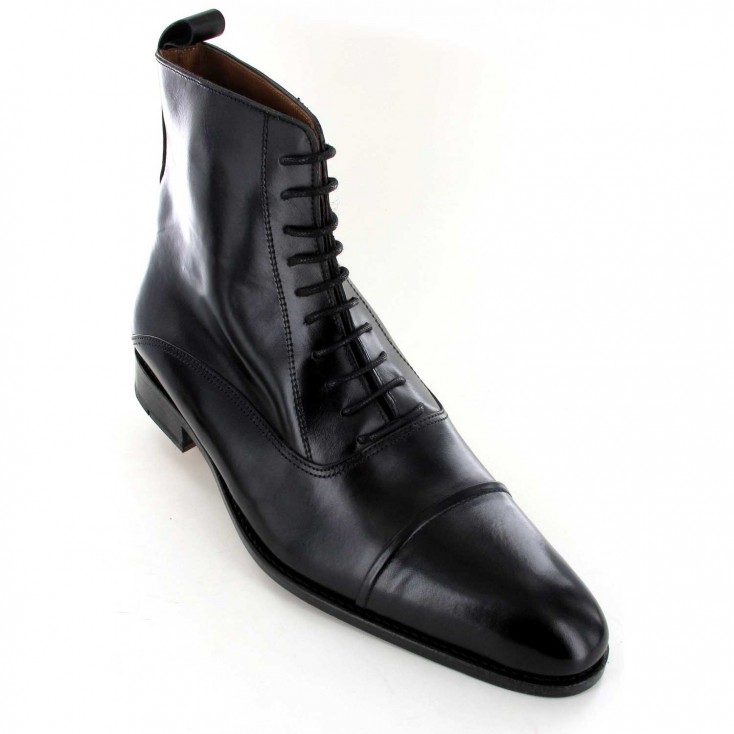 Men's Ankle Boots Black Cap Toe Handmade Leather Boot