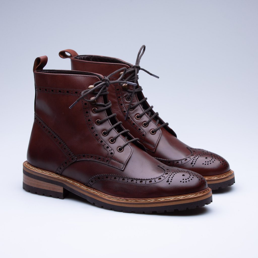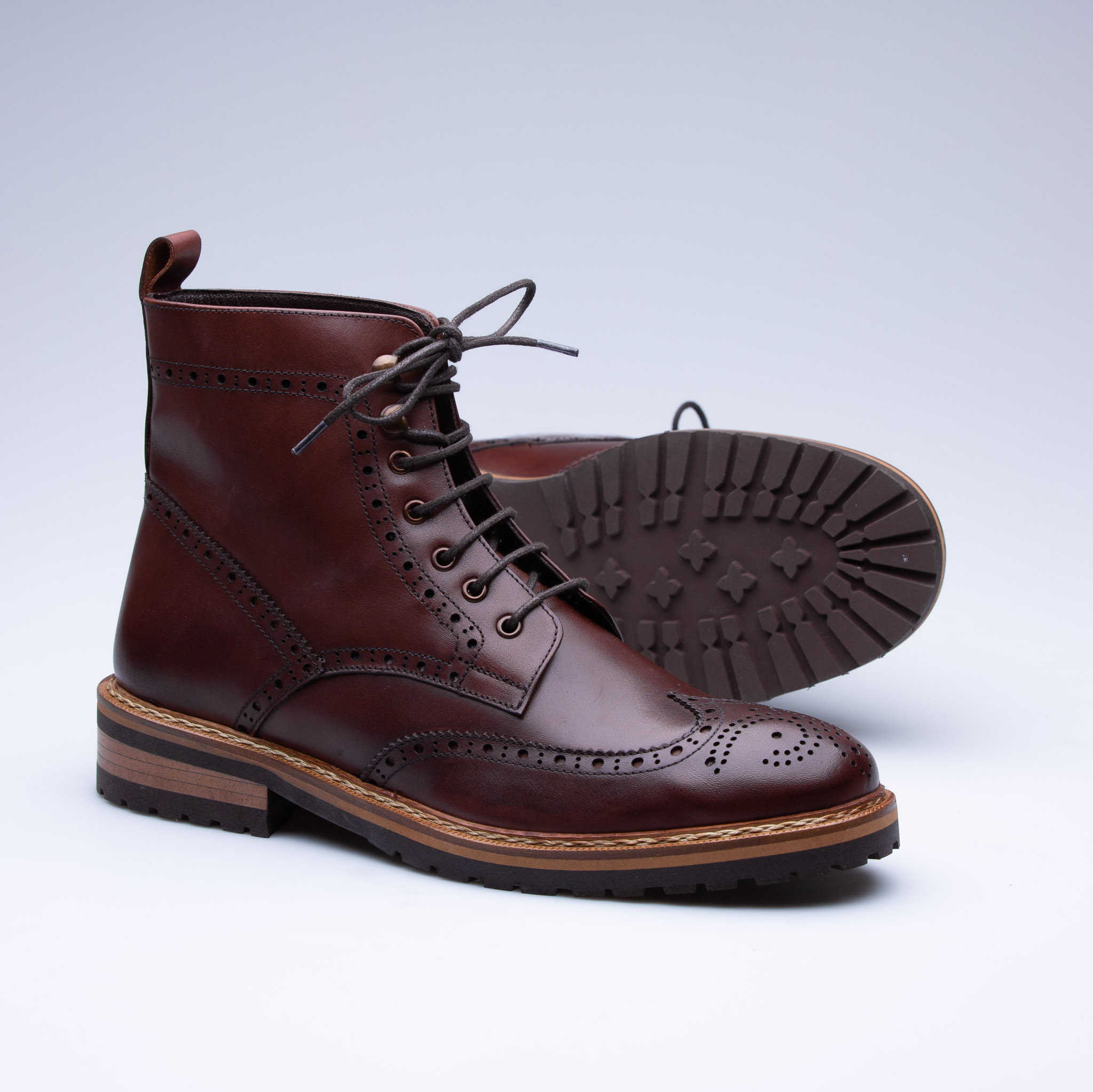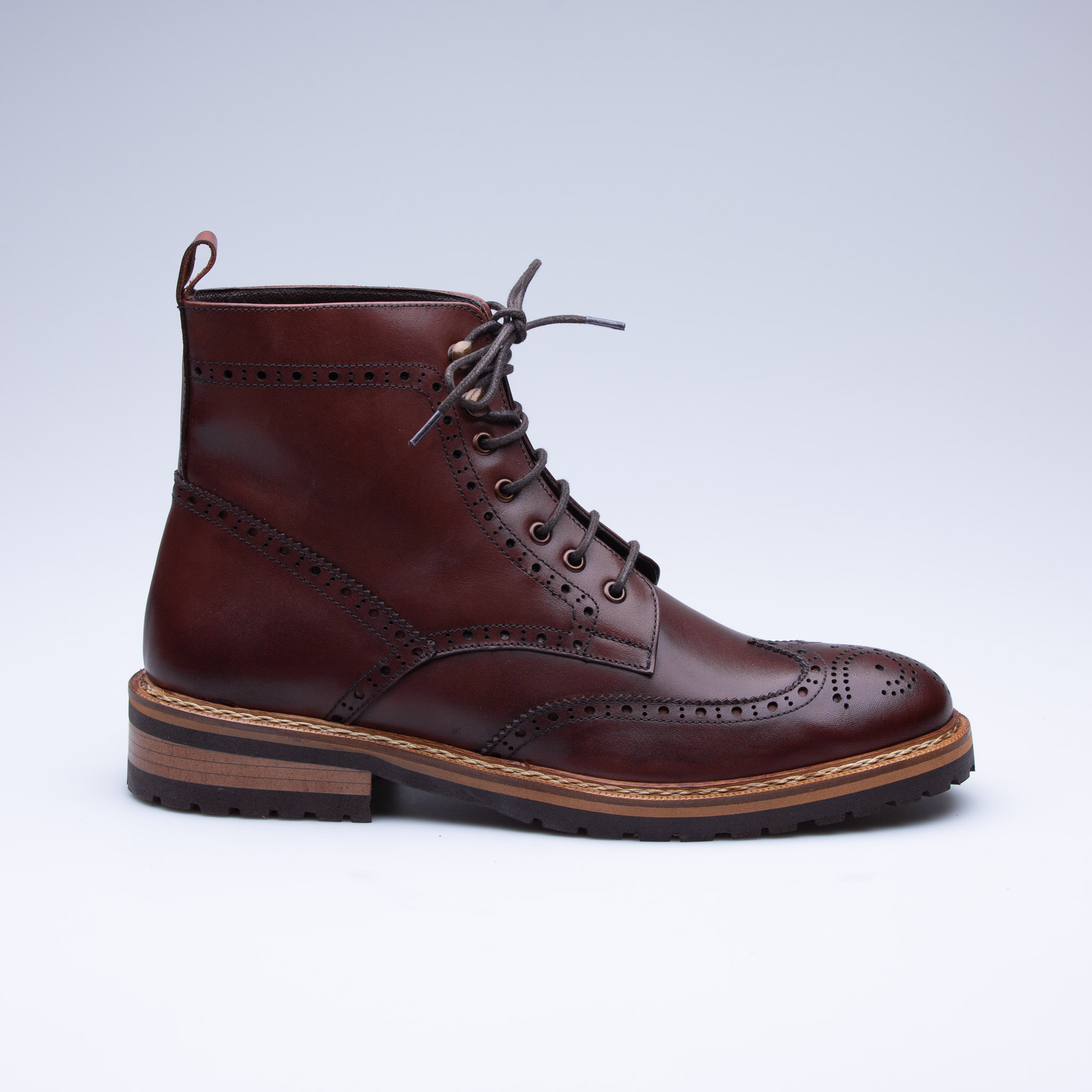 Bespoke Cordovan Men's Lace Up Wing Tip Ankle Leather Boot