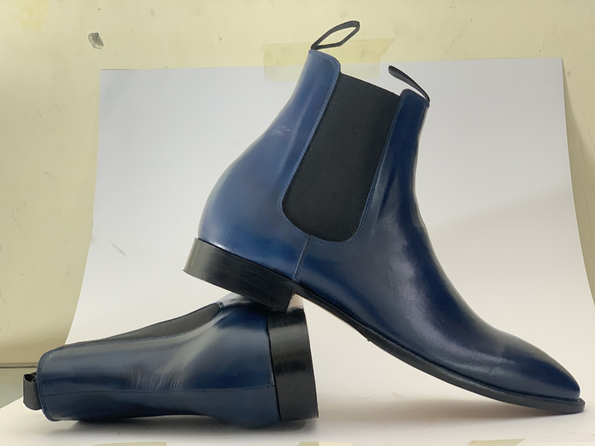 Hand Painted Blue Ankle High Chelsea Boot For Men