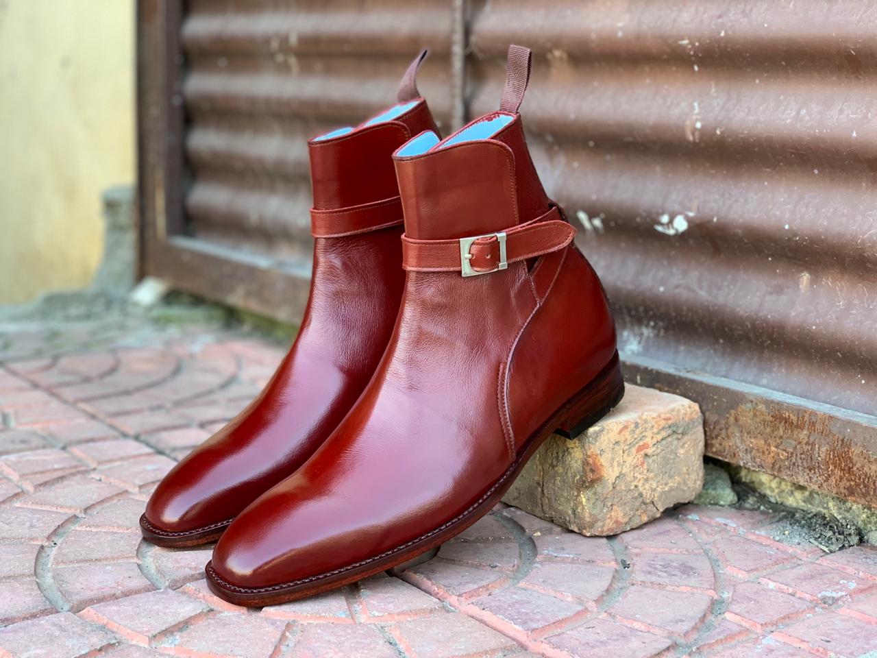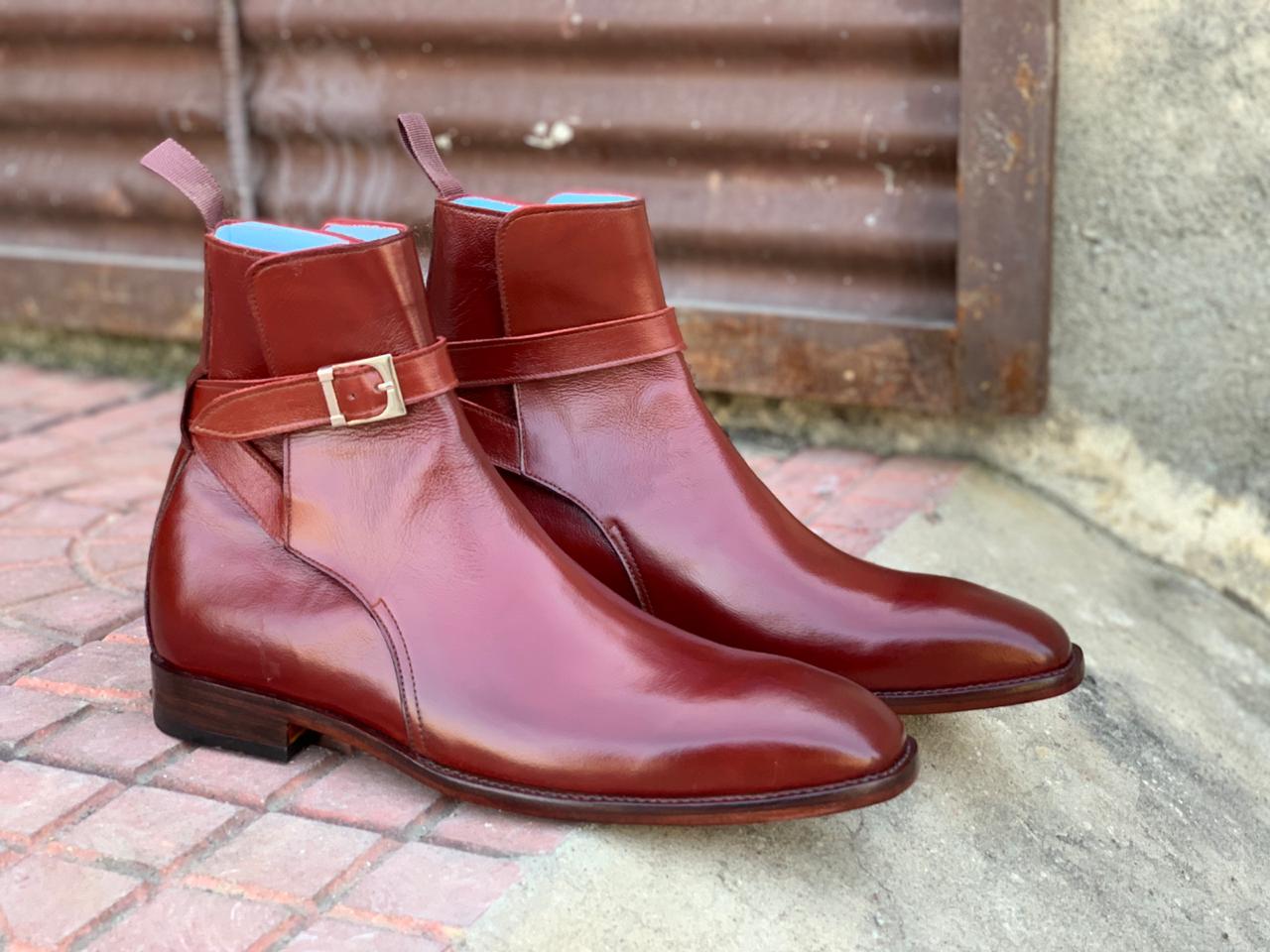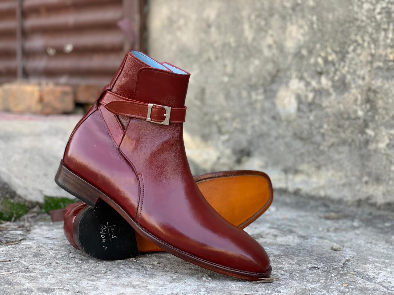 Elegant Burgundy Ankle Jodhpurs Style Leather Boot For Men