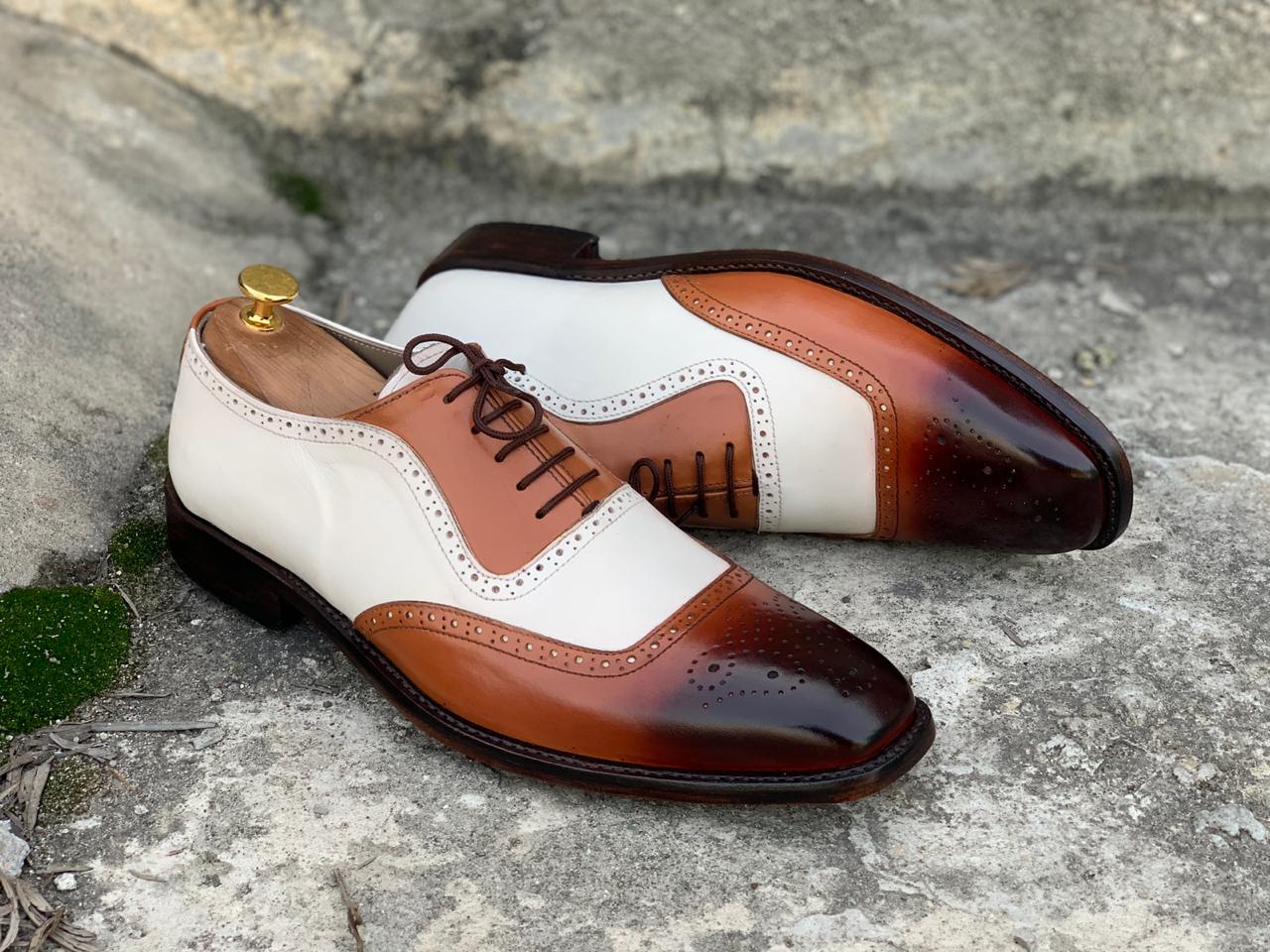 Hand Painted Two Tone Brown & White Lace Up Leather Shoes